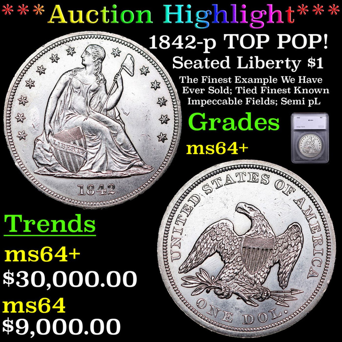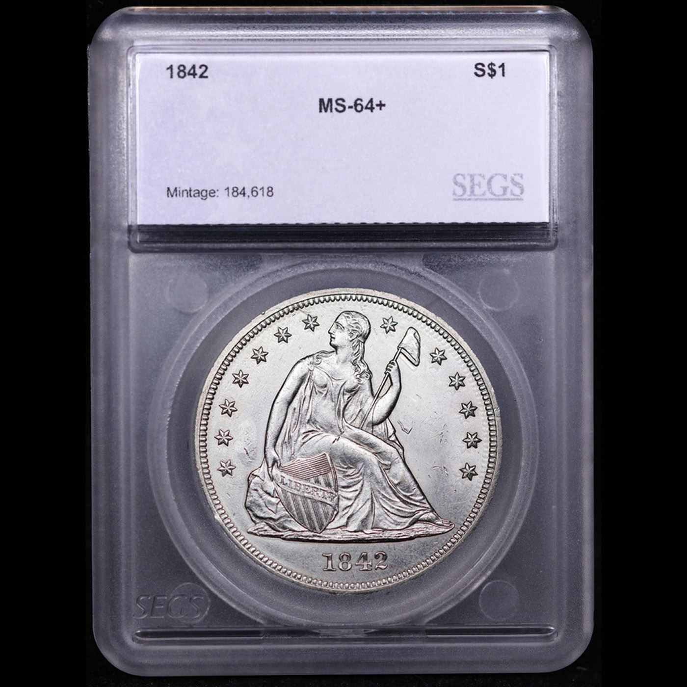 ***Auction Highlight*** 1842-p TOP POP! Seated Liberty Dollar $1 Graded ms64+ By SEGS. A Key Date's Pick, Bid to Win, Don't let it get Away, you might not find its equal Coin. I give this coin my highest recommendation