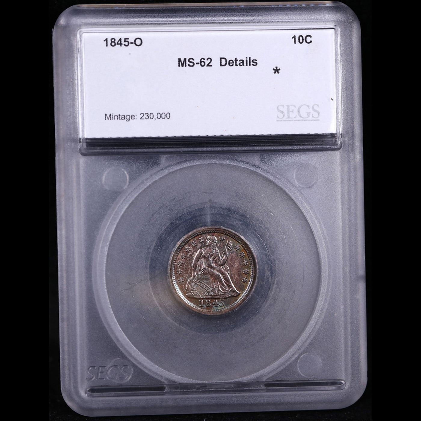 ***Auction Highlight*** 1845-o Seated Liberty Dime 10c Graded ms62 details By SEGS.