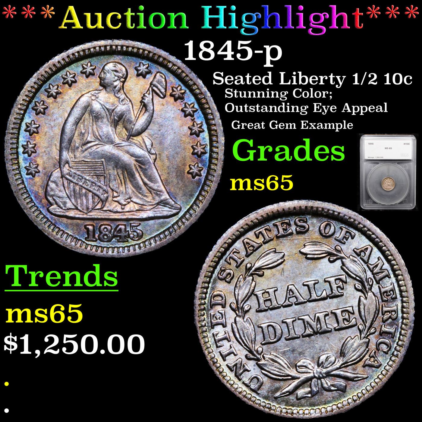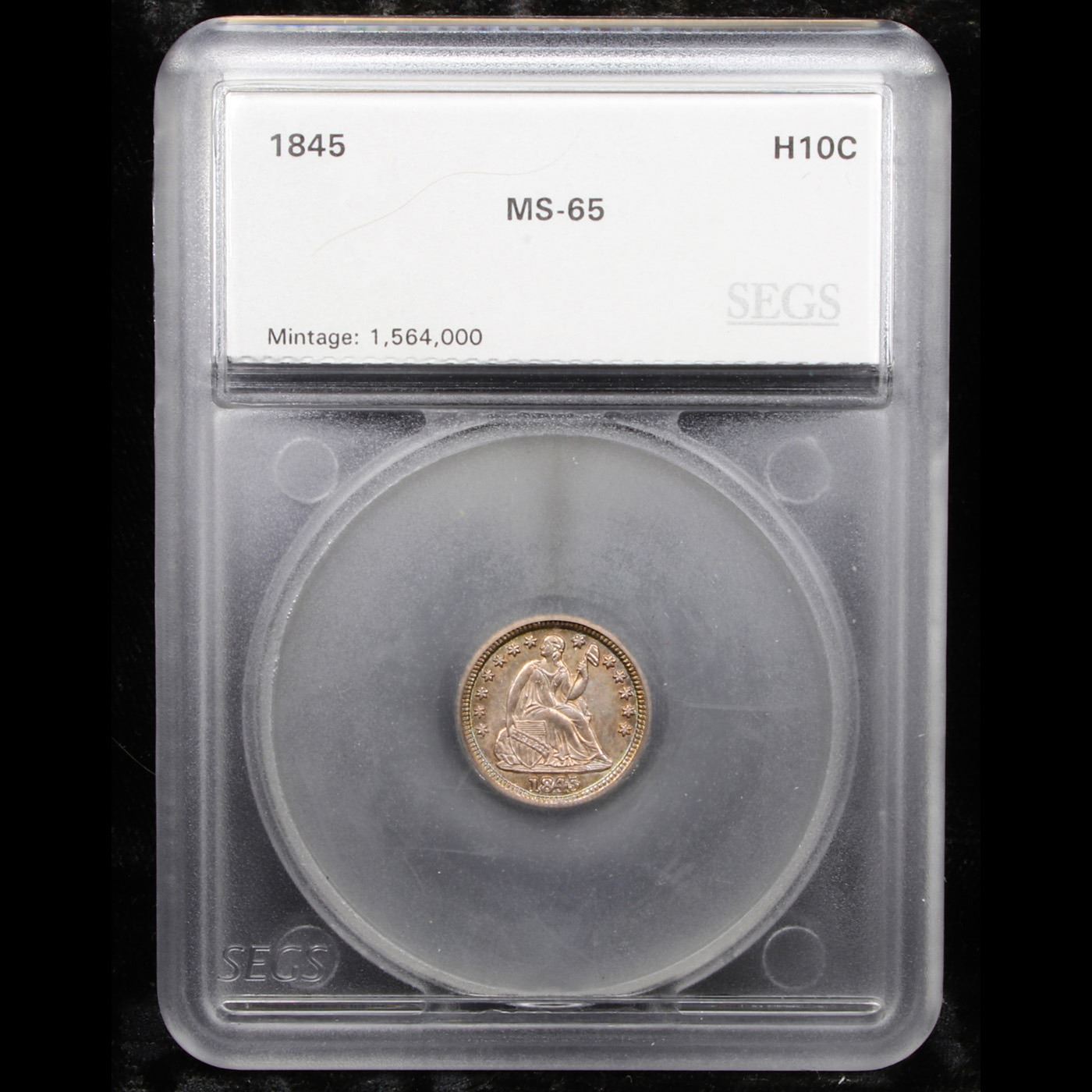 ***Auction Highlight*** 1845-p Seated Liberty Half Dime 1/2 10c Graded ms65 By SEGS. A Corey's Pick, Bid to Win, Don't let it get Away Coin