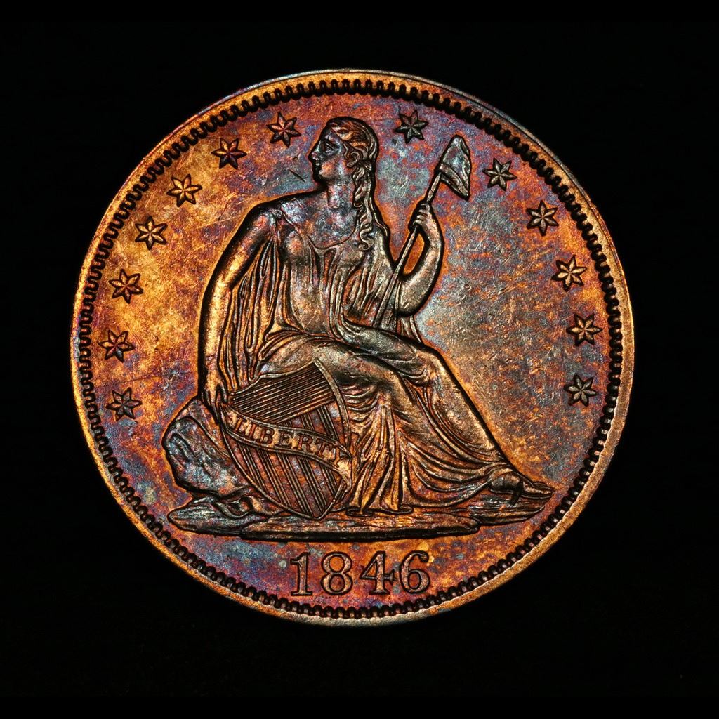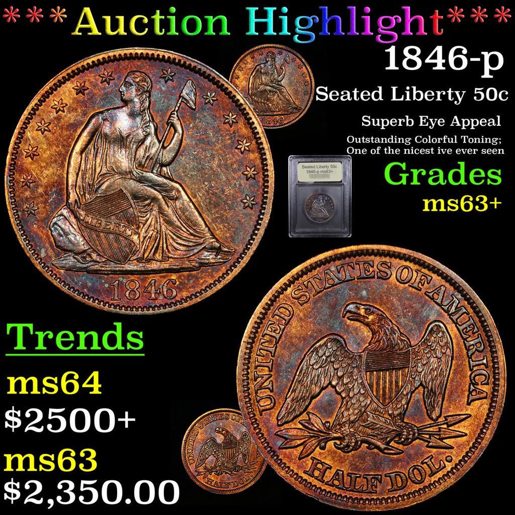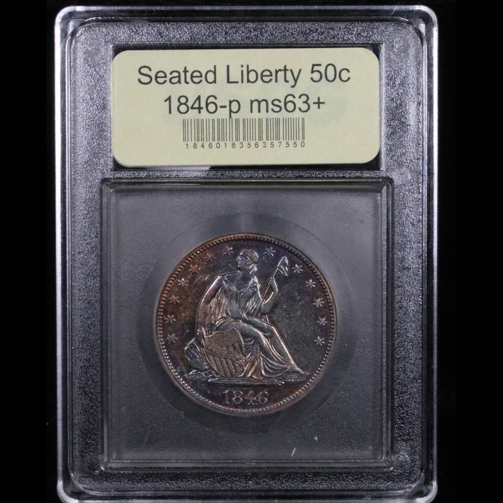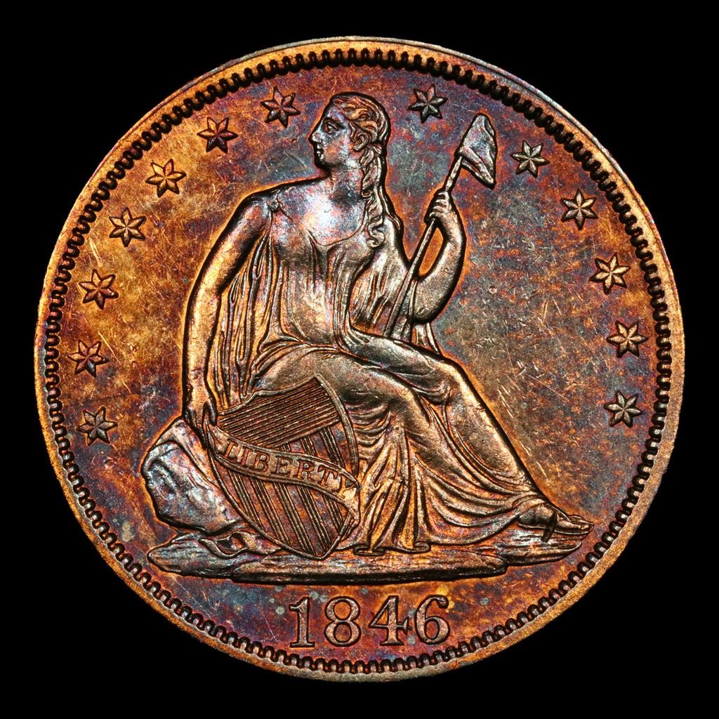***Auction Highlight*** 1846-p Superb Eye Appeal Outstanding Colorful Toning; one of the nicest ive ever seen Seated Half Dollar 50c Graded Select+ Unc By USCG. A Corey's Pick, Bid to Win, Don't let it get Away, you might not find its equal Coin