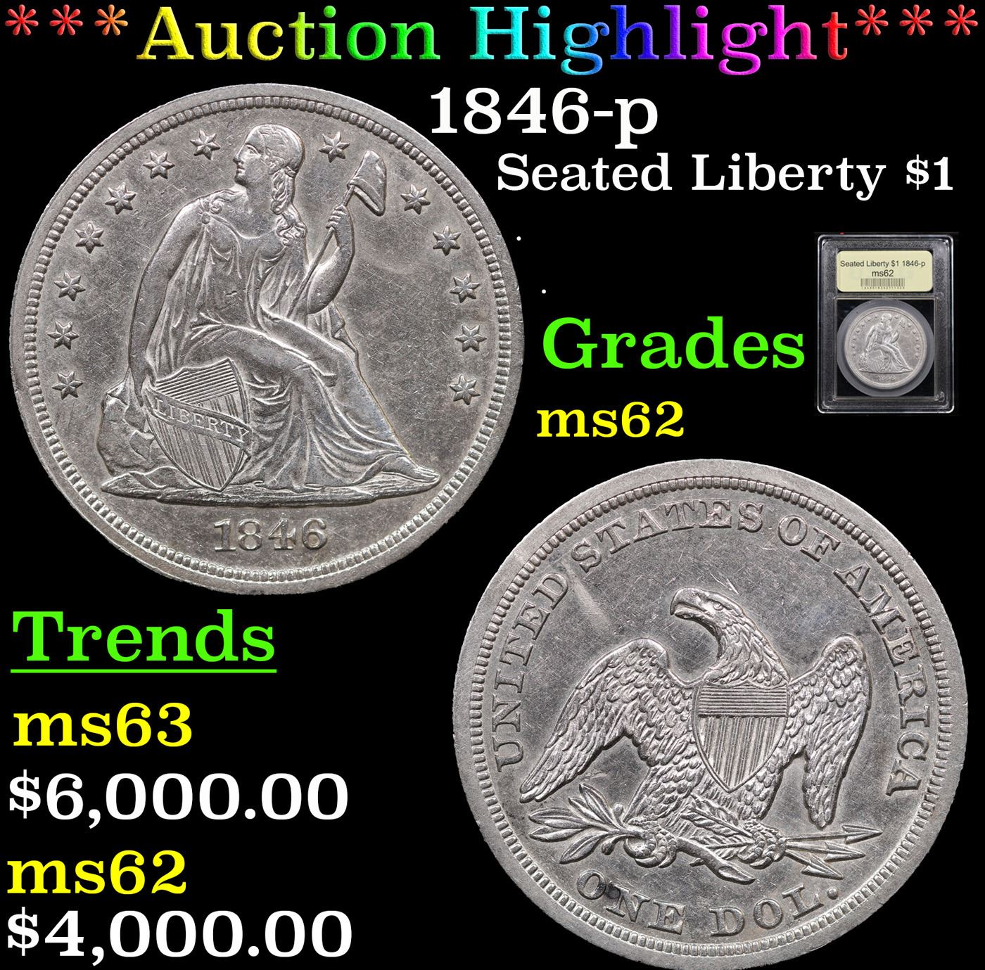 ***Auction Highlight*** 1846-p Seated Liberty Dollar $1 Graded Select Unc By USCG.
