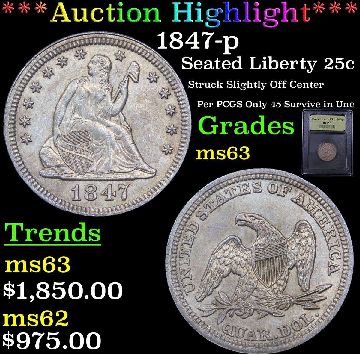 ***Auction Highlight*** 1847-p Seated Liberty Quarter 25c Graded Select Unc By USCG. 0 Up for Auction is an attractive 1847-p Seated Quarter Dollar,