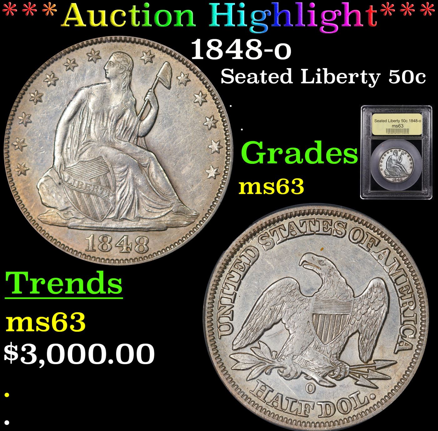 ***Auction Highlight*** 1848-o Seated Half Dollar 50c Graded Select Unc BY USCG. A Key Date's Pick, Bid to Win, Don't let it get Away Coin