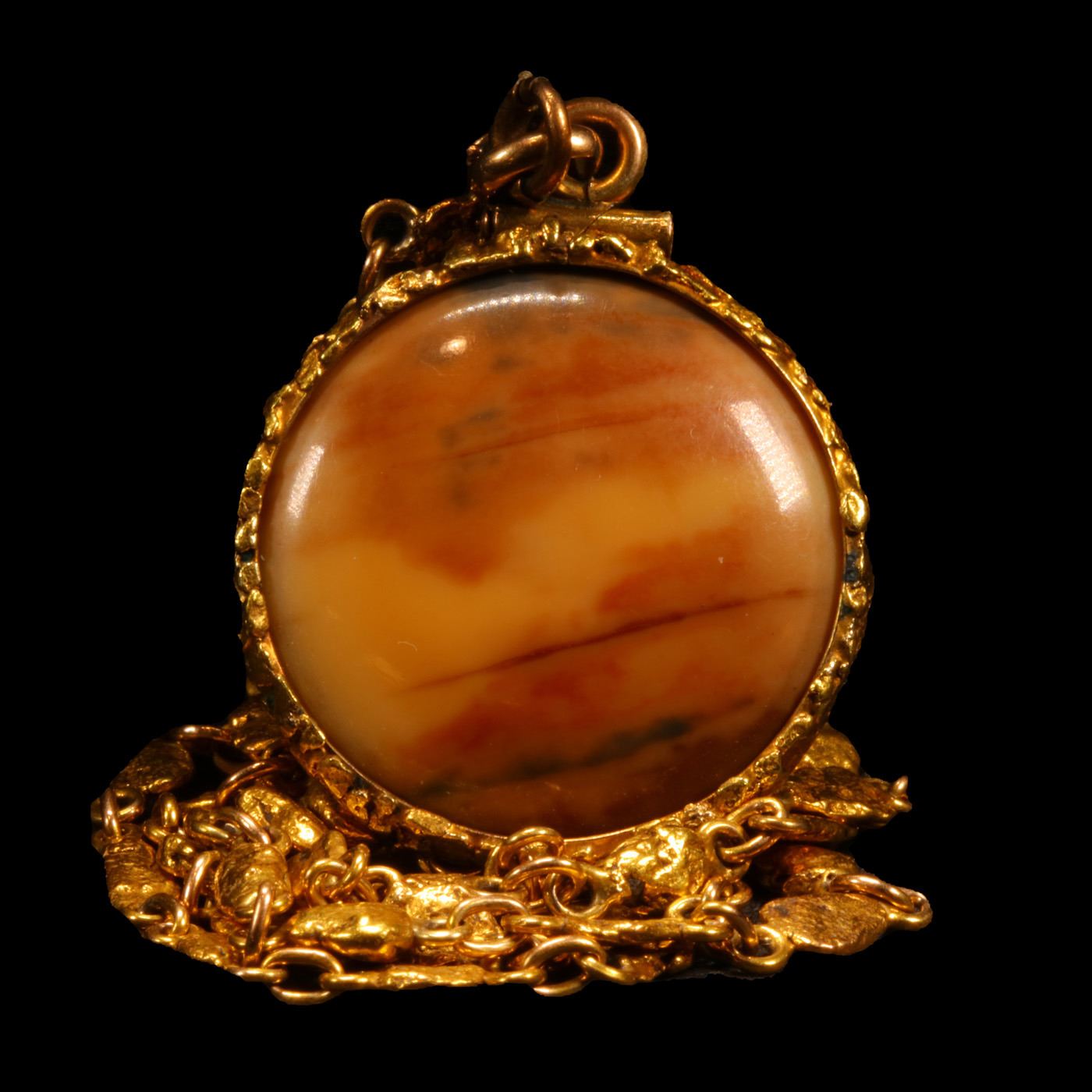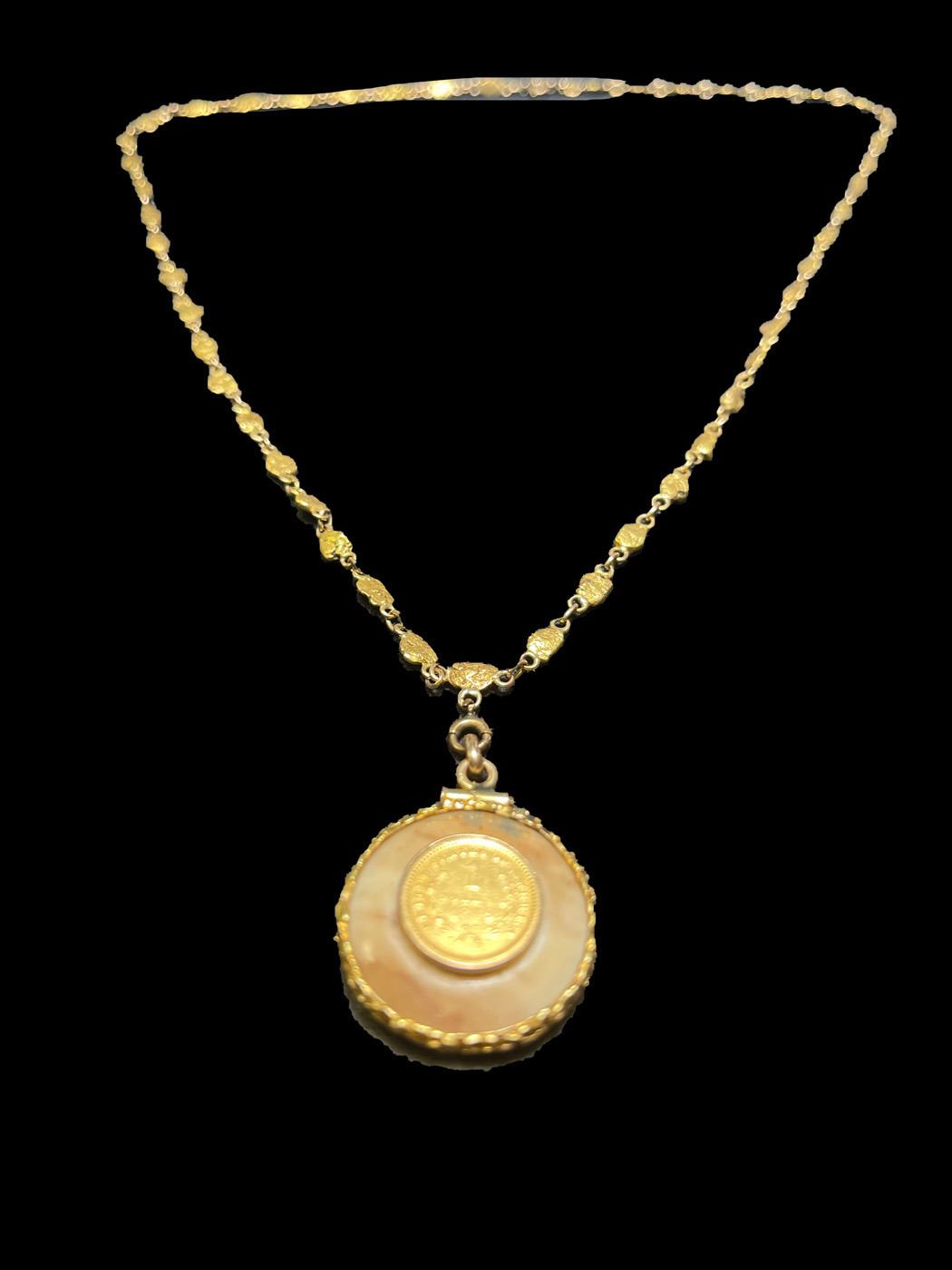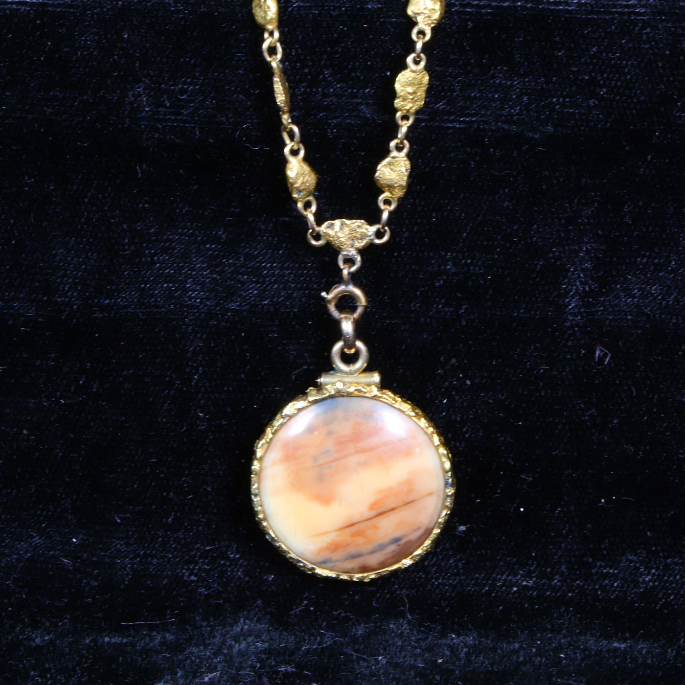 ***Auction Highlight*** 1849-o Gold $1 Mounted On a Beautiful Opal W/ 14k Gold Nugget Chain & 14k Gold Bezel Numismatic Exunomia Grades.