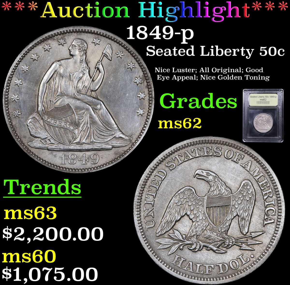 ***Auction Highlight*** 1849-p Seated Half Dollar 50c Graded Select Unc By USCG.