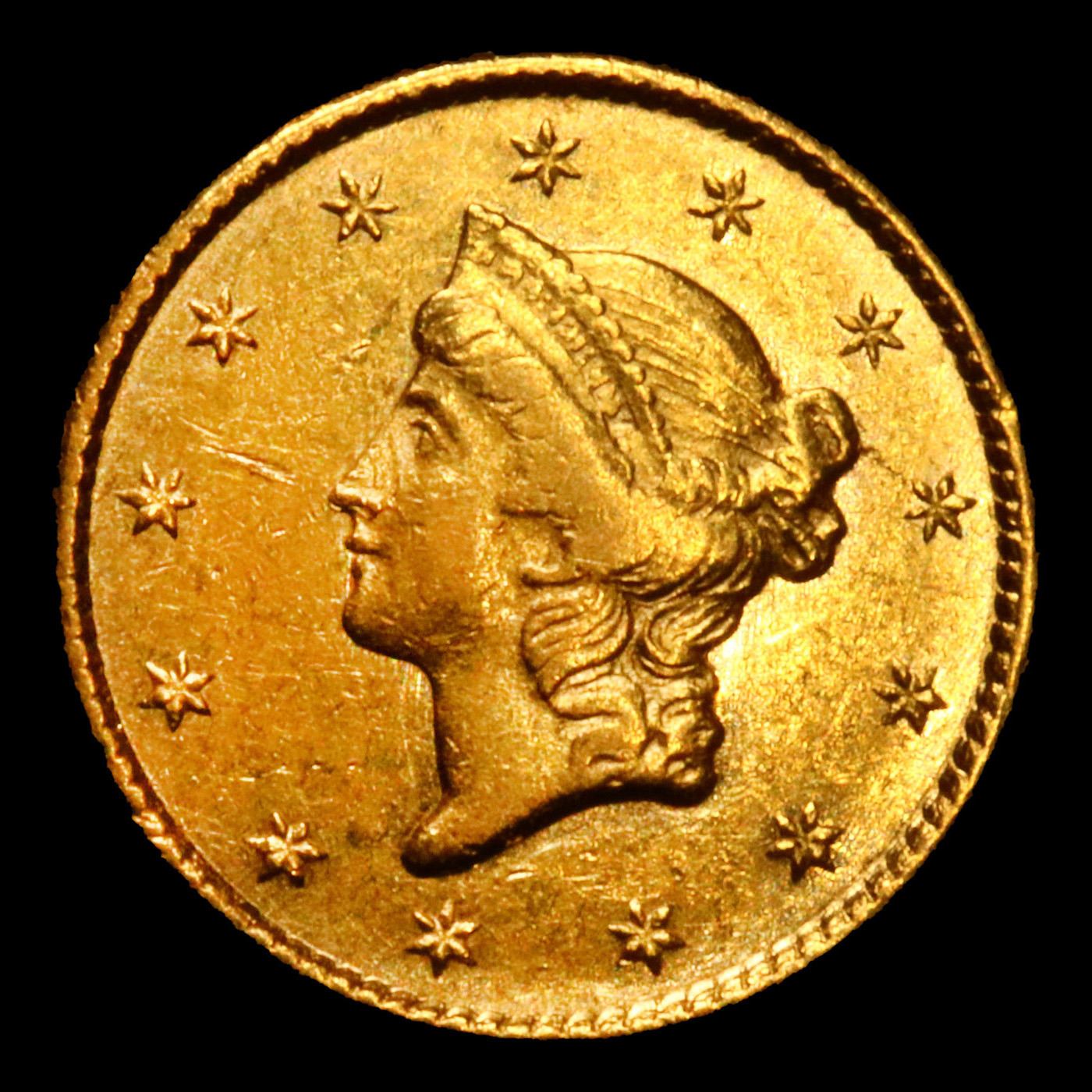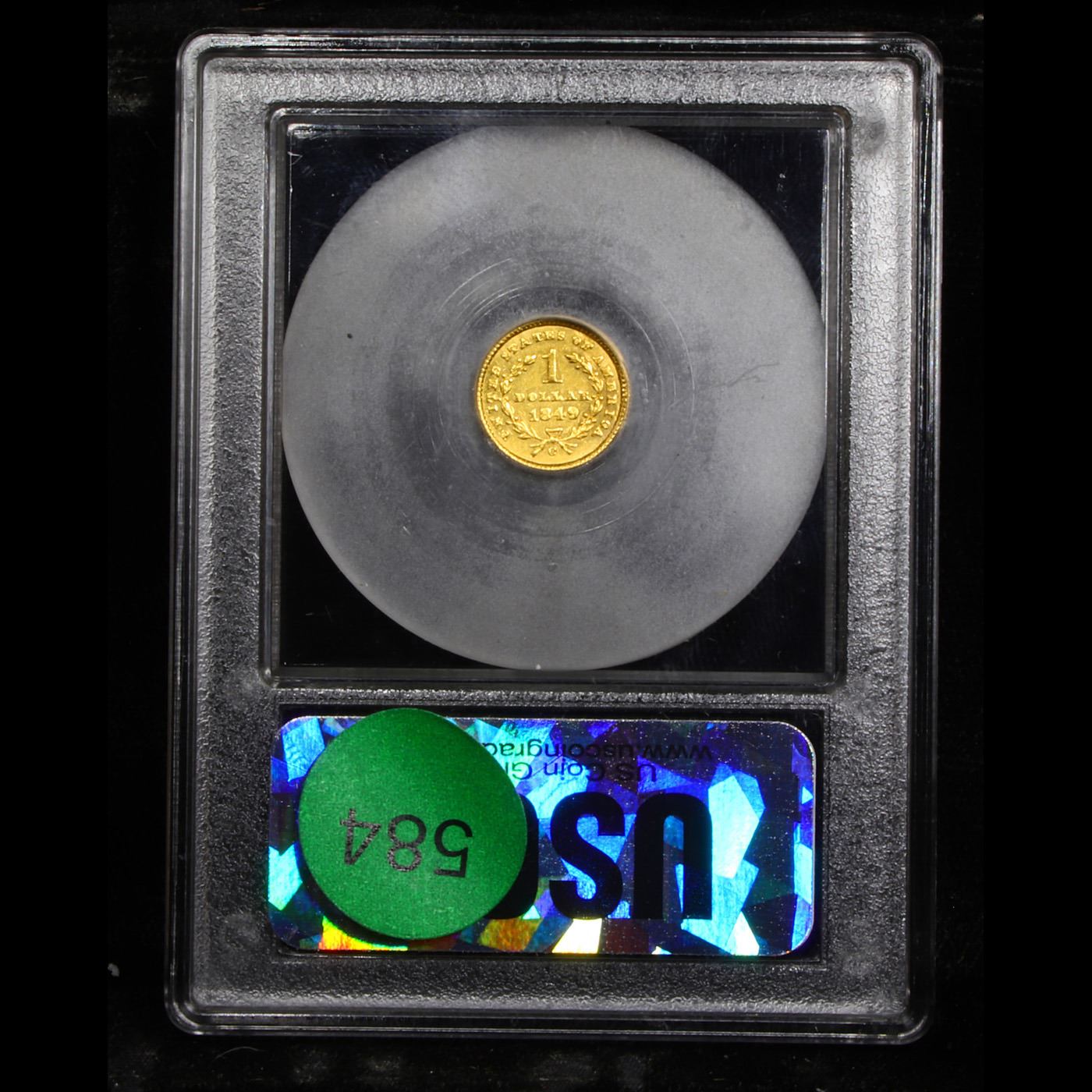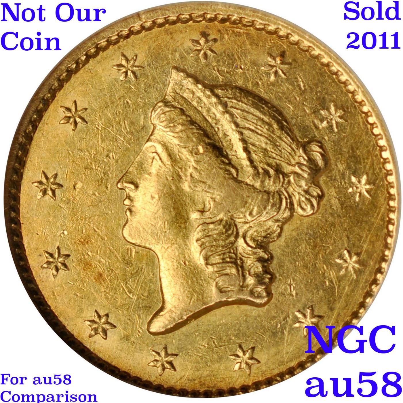 ***Auction Highlight*** 1849C Closed wreath TY1 Charlotte Gold Dollar $1 Graded Select au+ By USCG.        Variety 2-B. One variety is known to exist. The 1849-C Closed Wreath is the more available of the two '49-C Wreath varieties, but is still very scarce in its own right, especially in the AU55 and finer levels of preservation. This Choice AU specimen displays rich apricot-gold color with hints of underlying green, and is better struck than most seen. Minor circulation marks are visible on both sides. I have included 2 examples for your comparison, an au55 and an au58. A Corey's Pick, Bid to Win, Don't let it get Away, you might not find its equal Coin