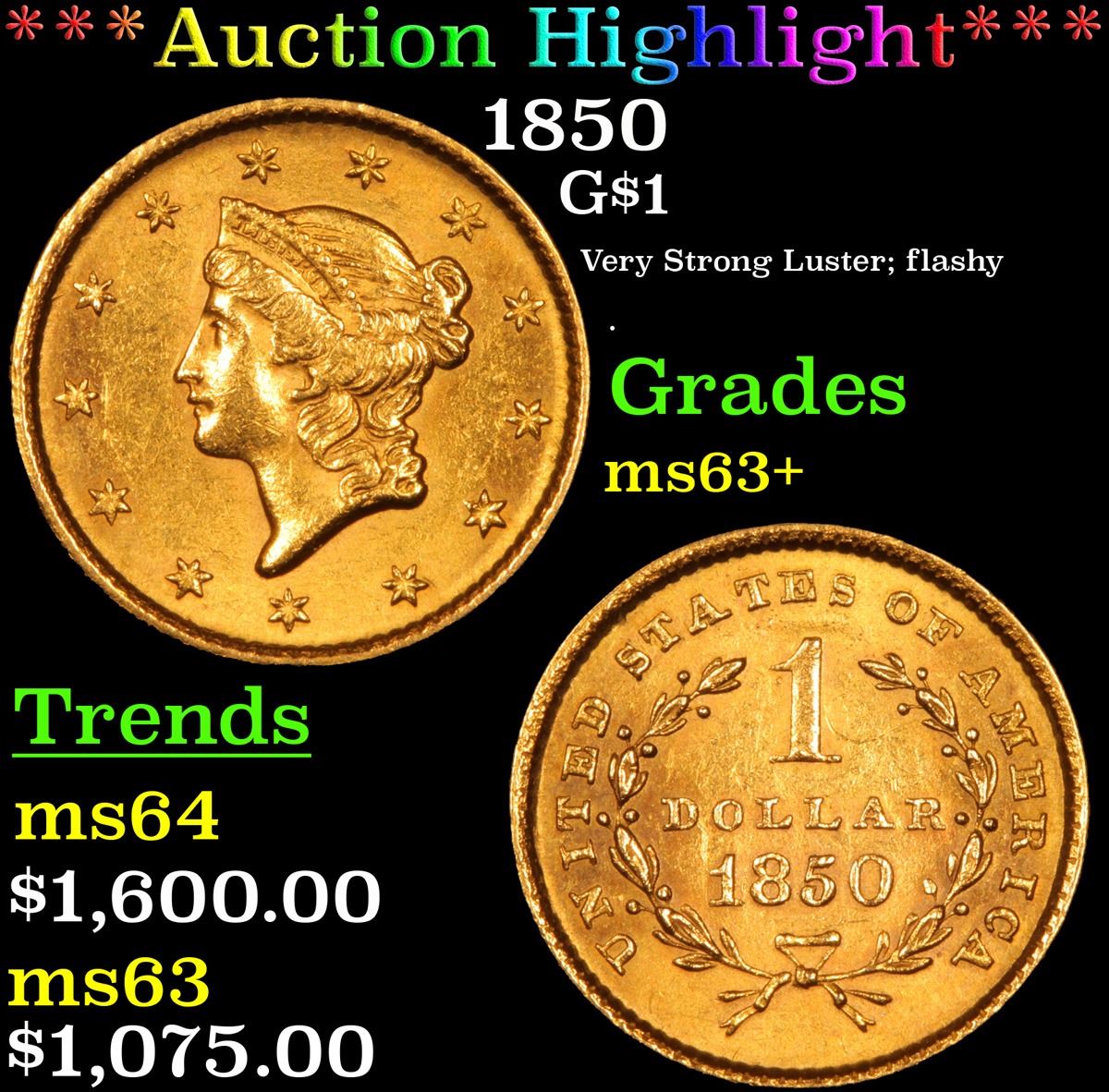 ***Auction Highlight*** 1850 Gold Dollar $1 Grades Select+ Unc.