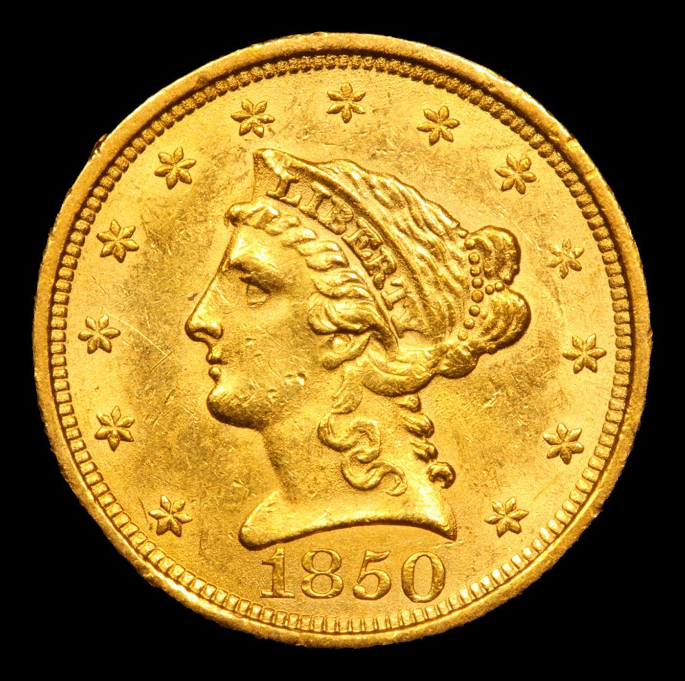 ***Auction Highlight*** 1850-p Gold Liberty Quarter Eagle $2 1/2 Graded Select Unc By USCG (fc)