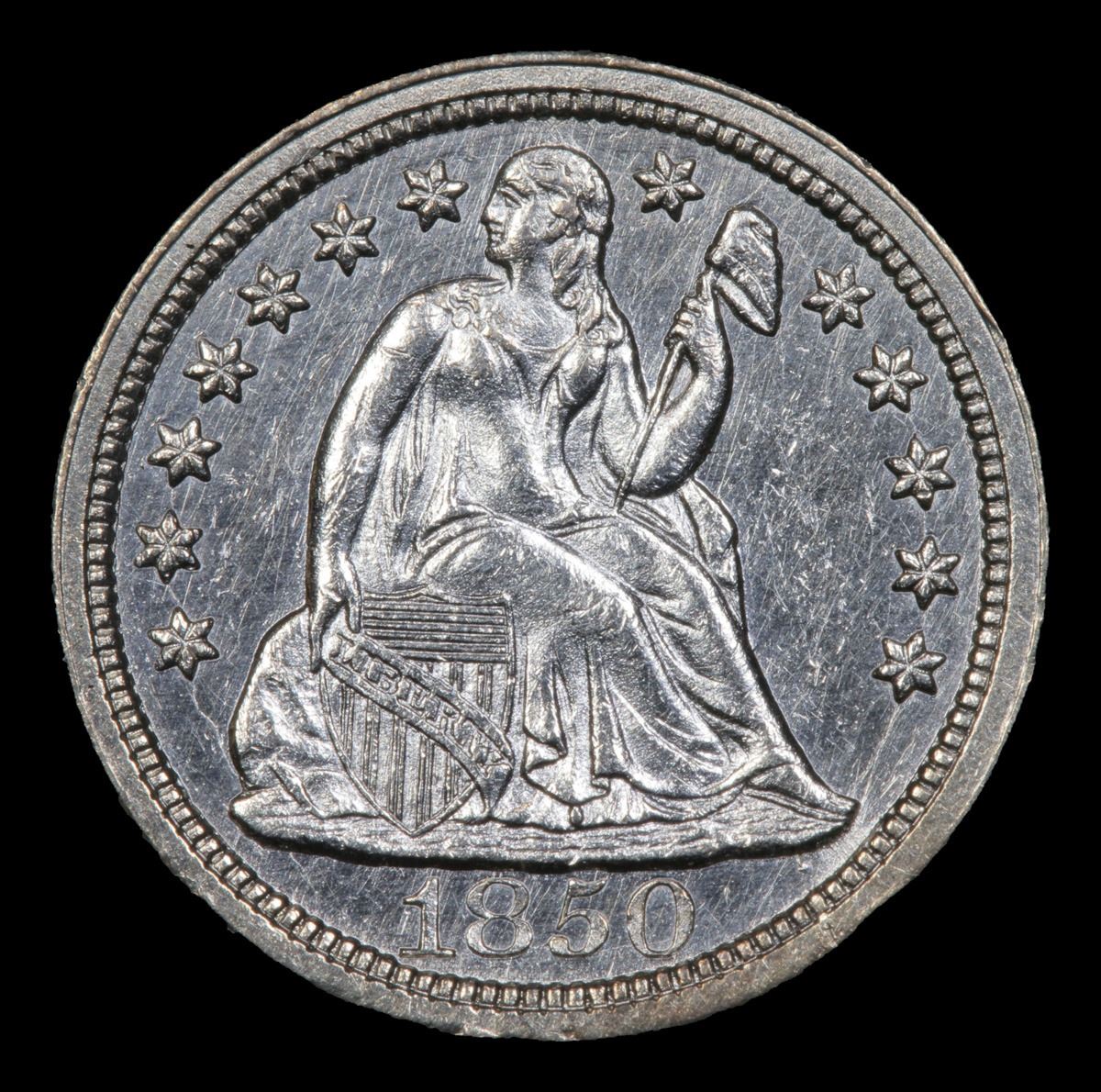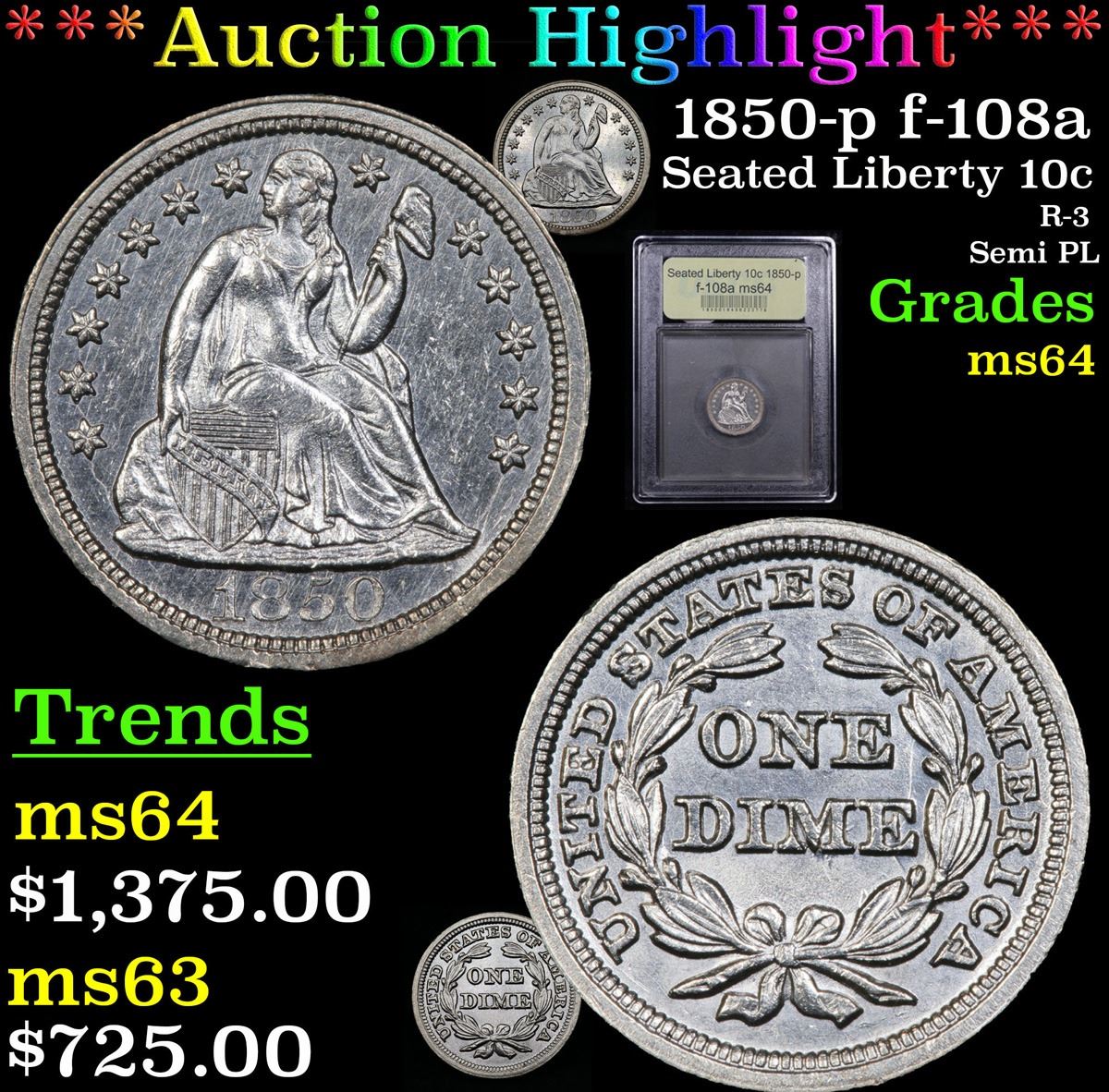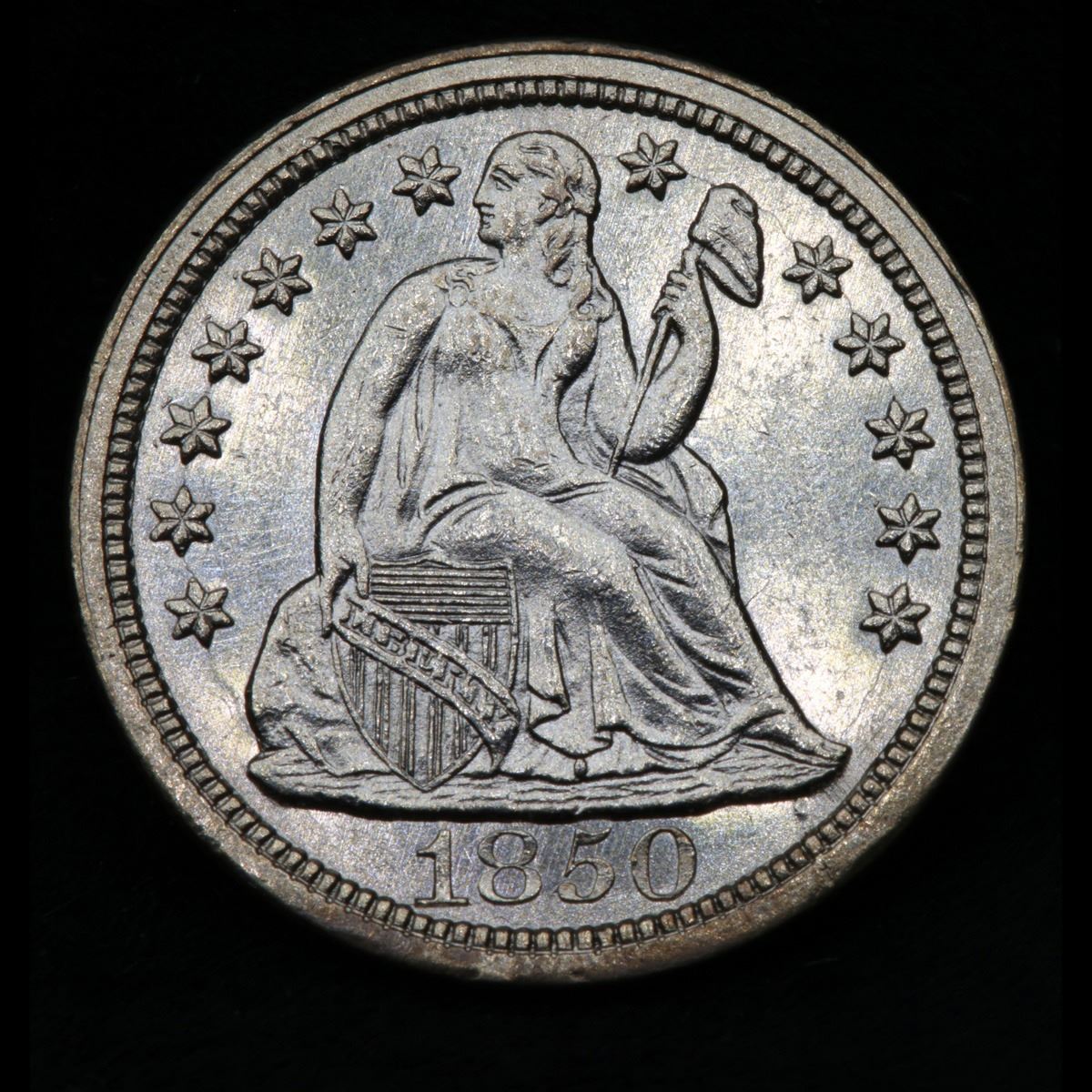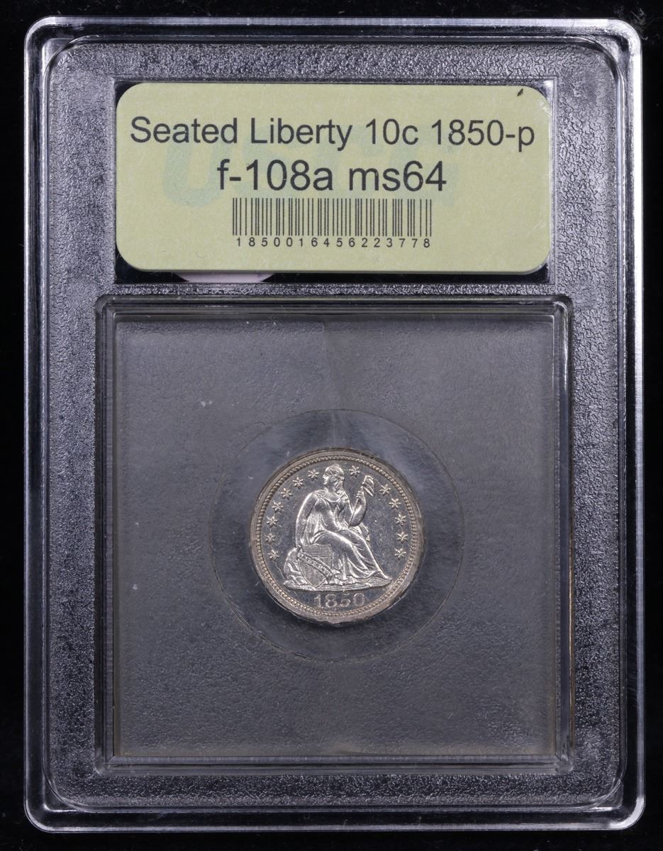 ***Auction Highlight*** 1850-p f-108a Seated Liberty Dime 10c Graded Choice Unc By USCG. 0