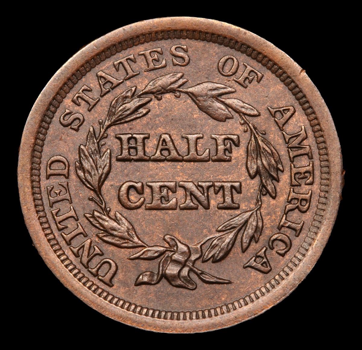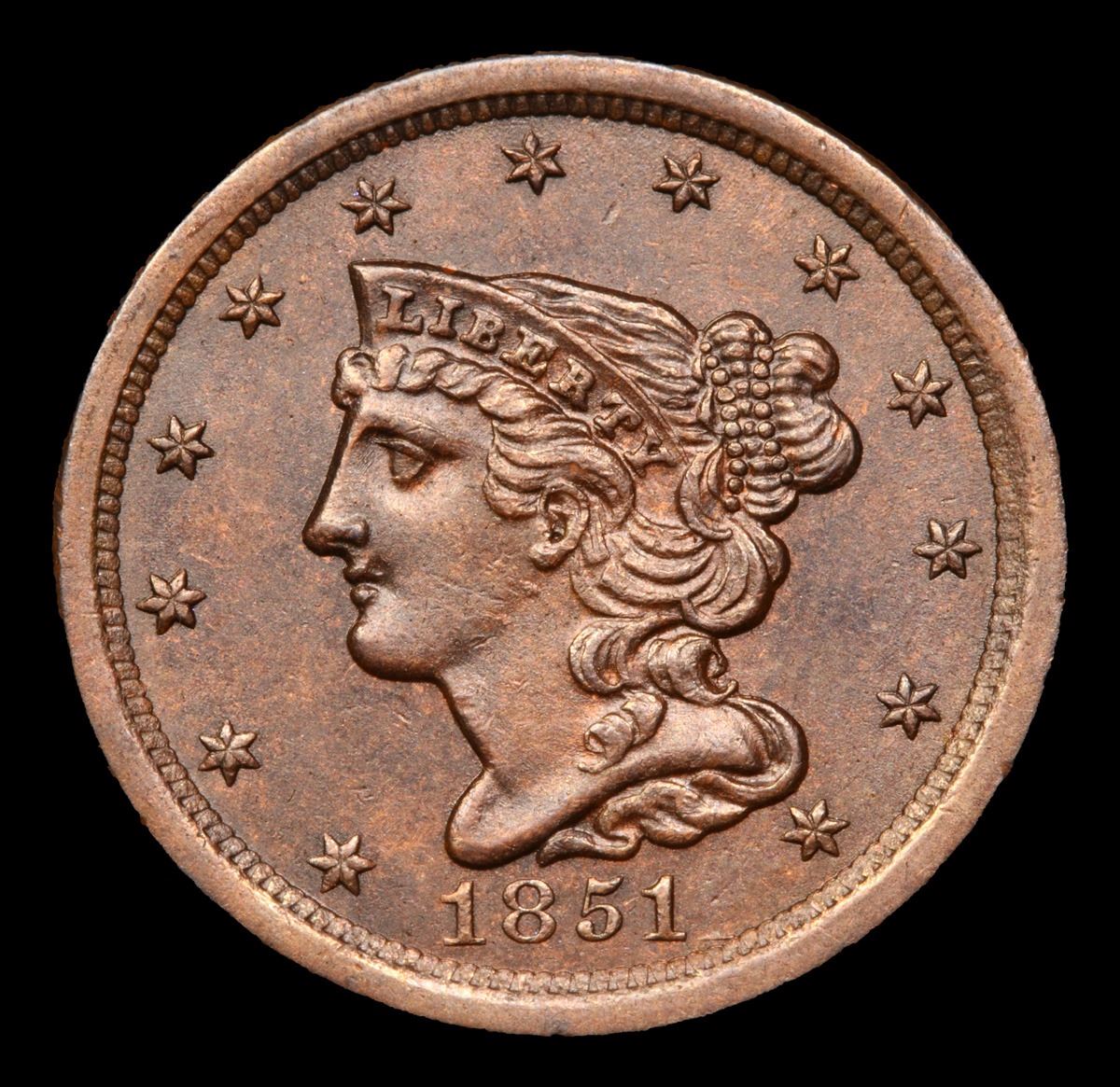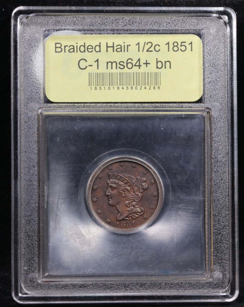 ***Auction Highlight*** 1851 C-1 Braided Hair Half Cent 1/2c Graded Choice+ Unc BN By USCG (fc)