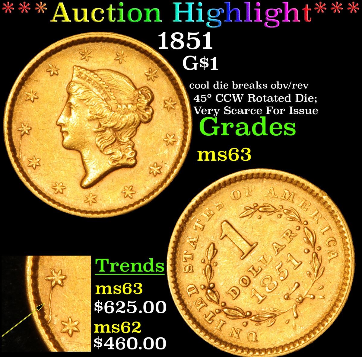 ***Auction Highlight*** 1851 Gold Dollar $1 Grades Select Unc.