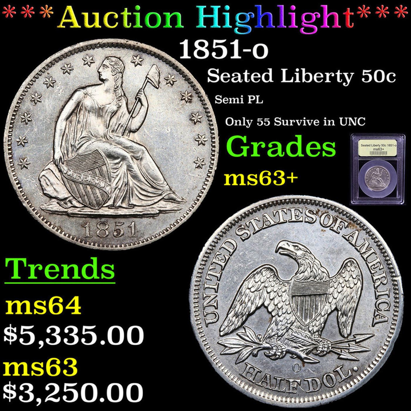 ***Auction Highlight*** 1851-o Seated Half Dollar 50c Graded Select+ Unc By USCG.