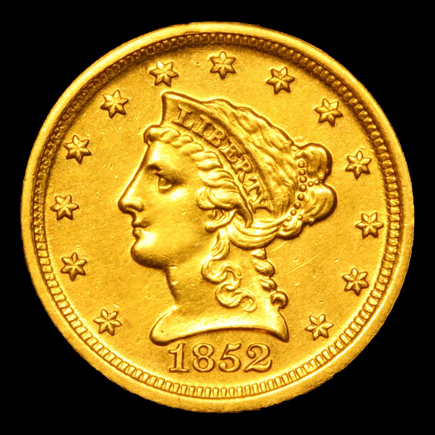***Auction Highlight*** 1852-d Delanga Gold Liberty Quarter Eagle $2 1/2 Graded Select Unc By USCG. The sole die pair for the year, used to strike just 4,078 pieces. The strike is excellent, showing only trifling softness on the right (facing) talon and a few other minor details. Bright, yellow-gold, and though wispy abrasions cross each side, severe marks are few. As may be expected for such a low-mintage date produced in the rough conditions of Southern gold country, Mint State survivors are condition rarities, and finding an example with the aesthetic appeal of the present coin is a numismatic luxury. Only 6 know examples survive in mint state. A Corey's Pick, Bid to Win, Don't let it get Away, you might not find its equal Coin. I give this coin my highest recommendation