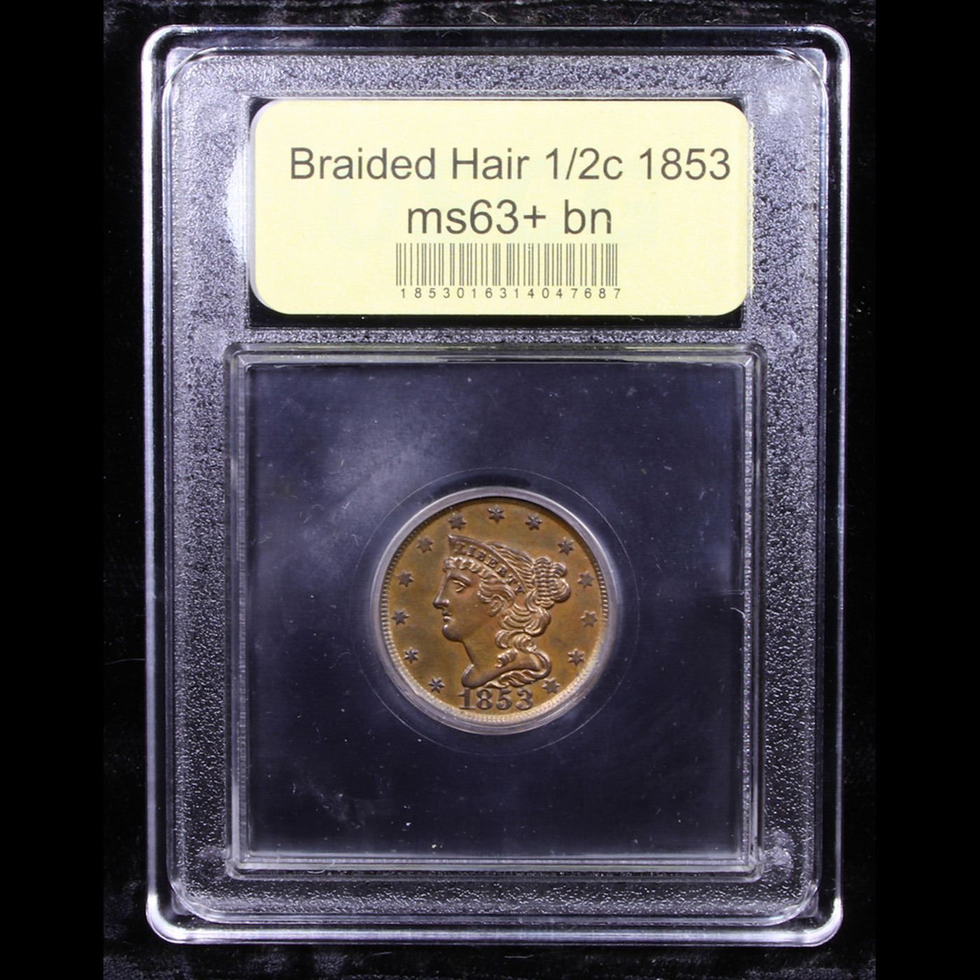 ***Auction Highlight*** 1853 Braided Hair Half Cent 1/2c Graded Select+ Unc BN By USCG (fc)