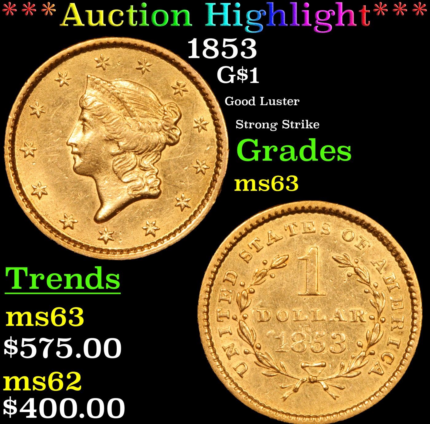 ***Auction Highlight*** 1853 Gold Dollar $1 Grades Select Unc.