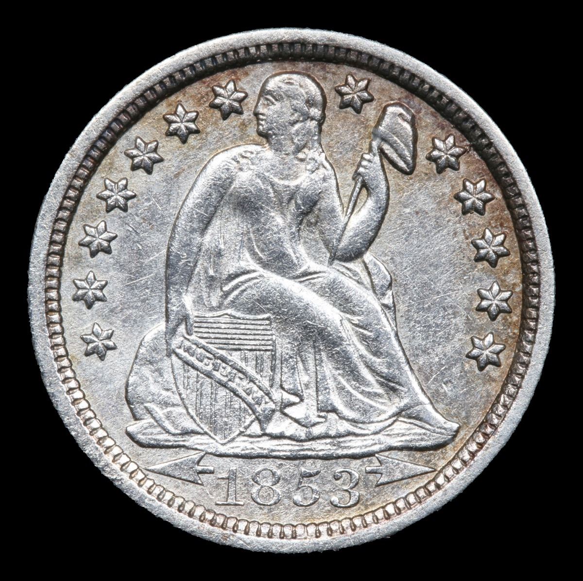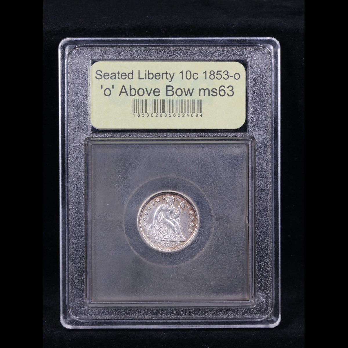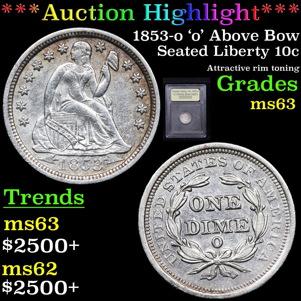 ***Auction Highlight*** 1853-o 'o' Above Bow Attractive rim toning . Seated Liberty Dime 10c Graded Select Unc By USCG. A Corey's Pick, Bid to Win Coin