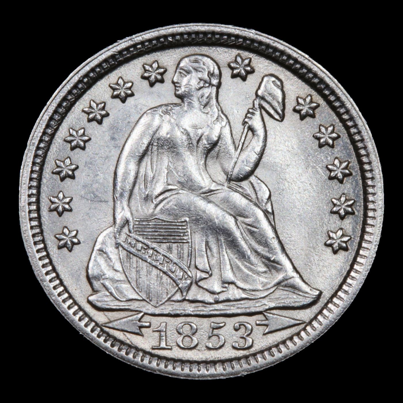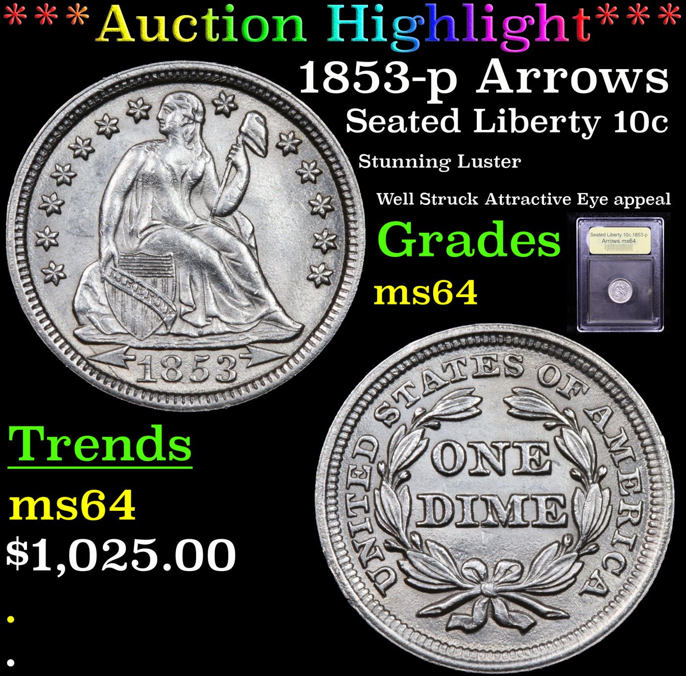 ***Auction Highlight*** 1853-p Arrows Seated Liberty Dime 10c Graded Choice Unc By USCG. A Corey's Pick, Bid to Win Coin