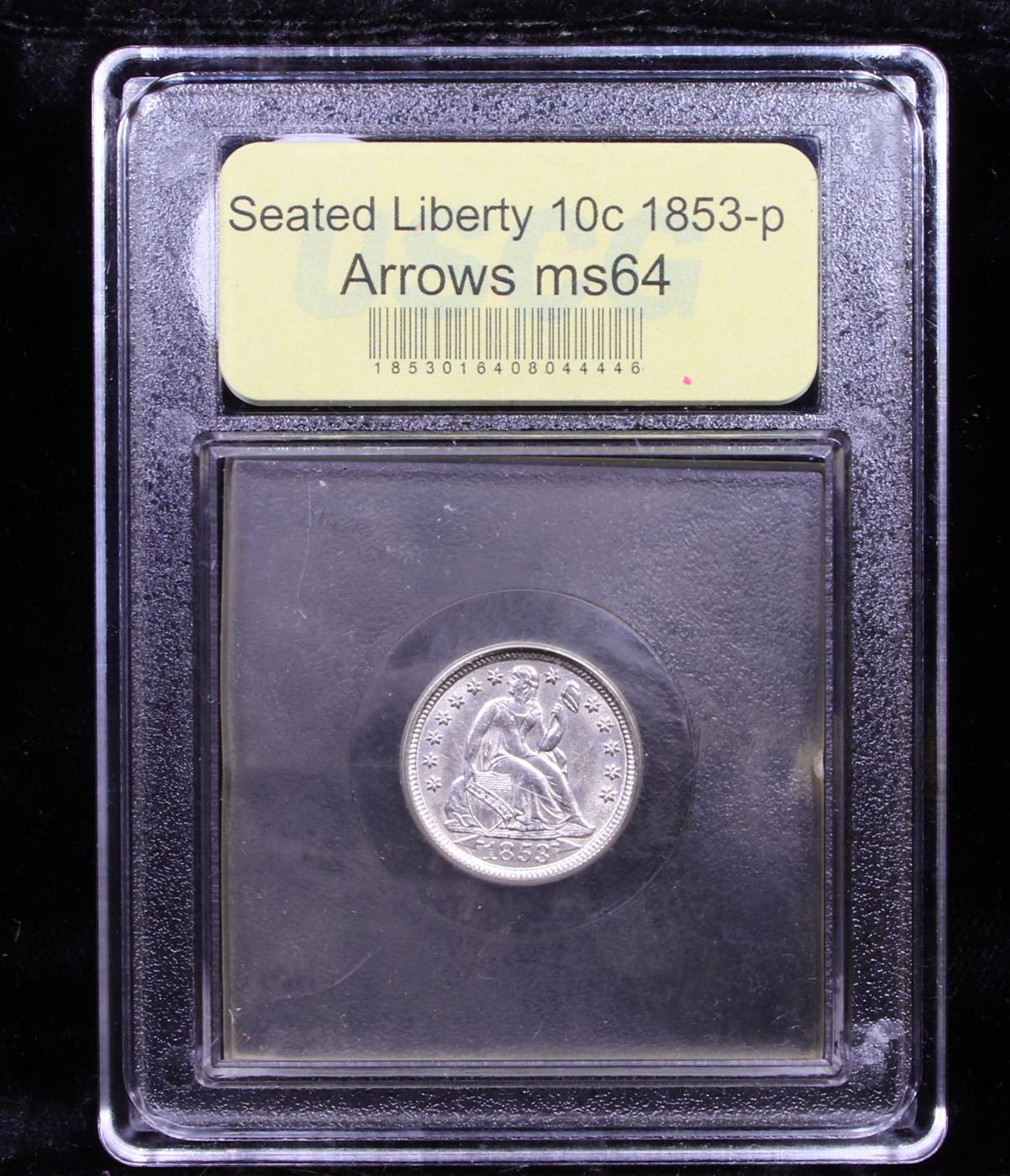 ***Auction Highlight*** 1853-p Arrows Seated Liberty Dime 10c Graded Choice Unc By USCG (fc)