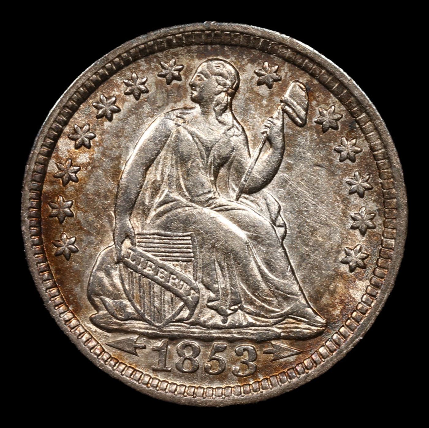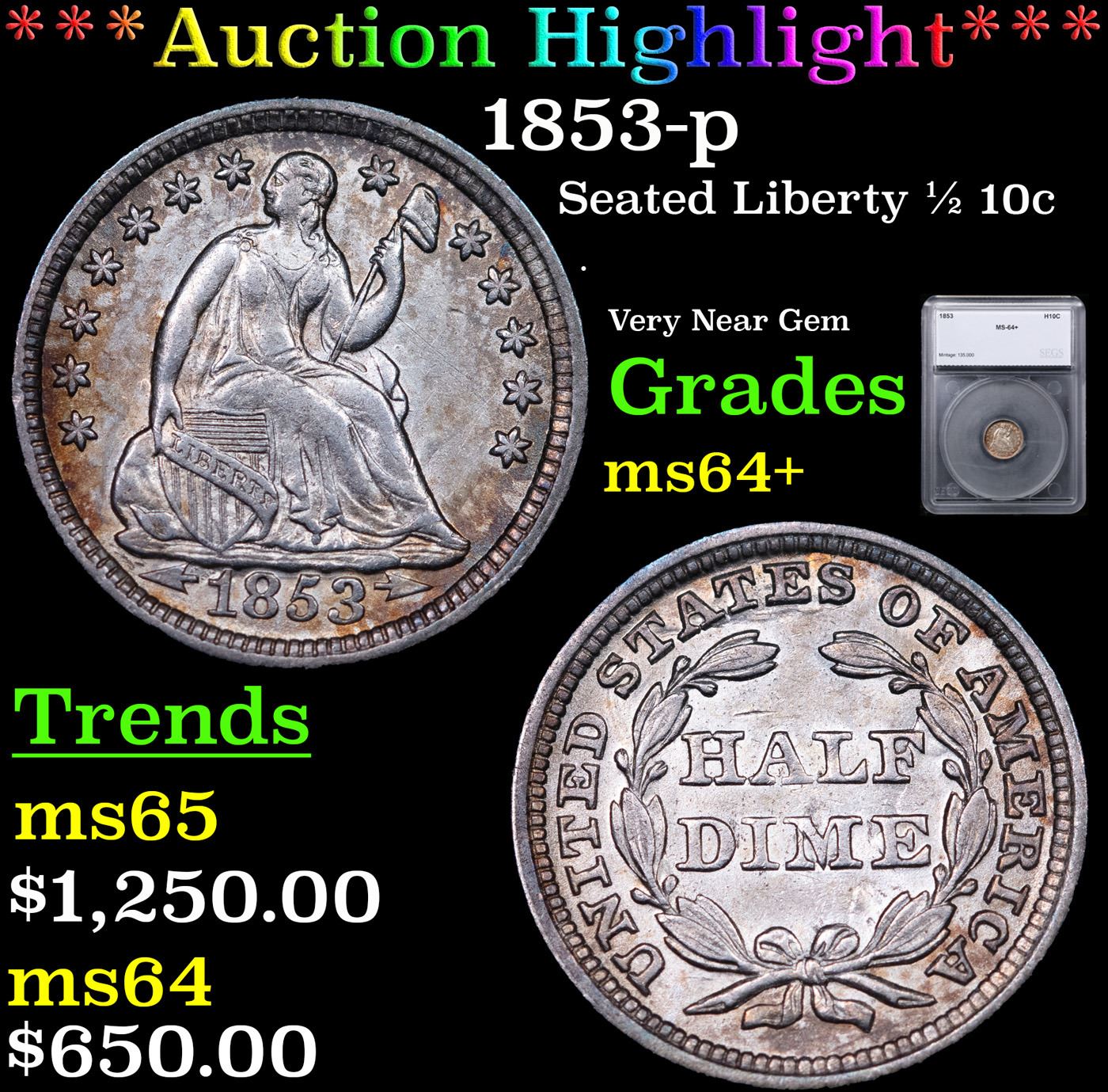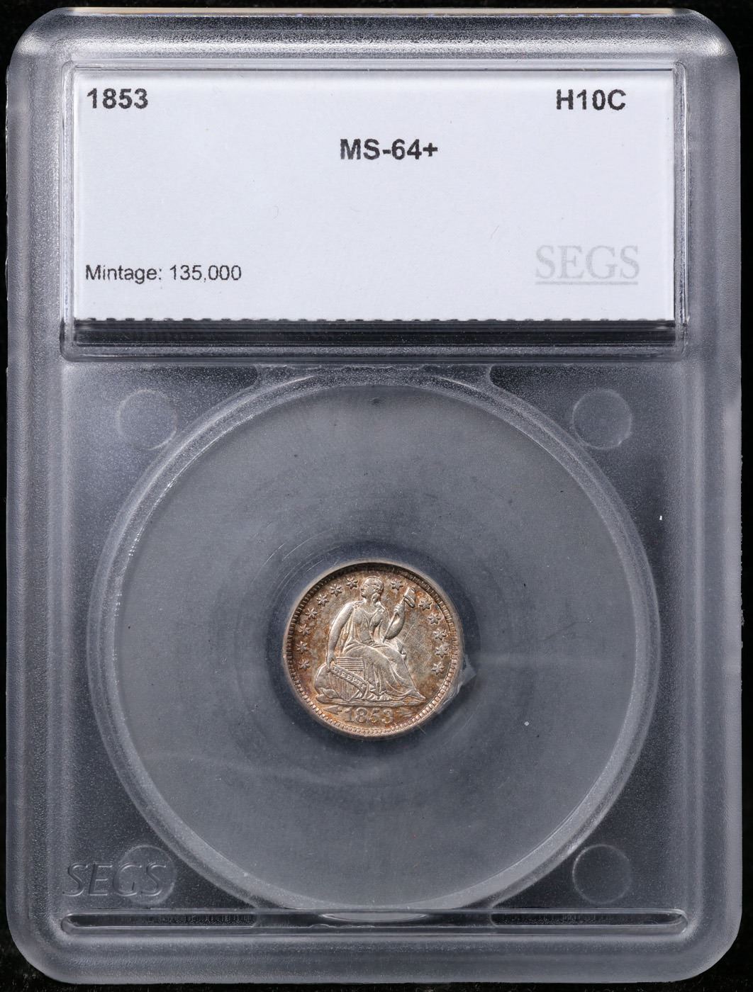 ***Auction Highlight*** 1853-p Seated Liberty Half Dime 1/2 10c Graded ms64+ By SEGS.