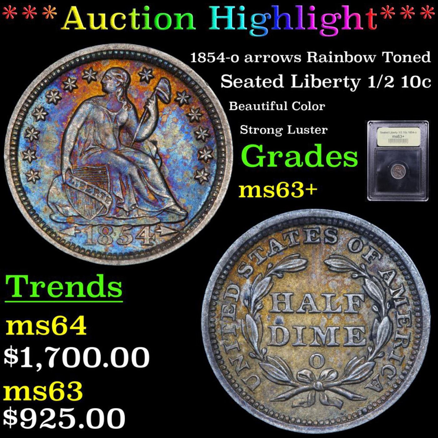 ***Auction Highlight*** 1854-o Seated Liberty Half Dime 1/2 10c Graded Select+ Unc By USCG (fc)