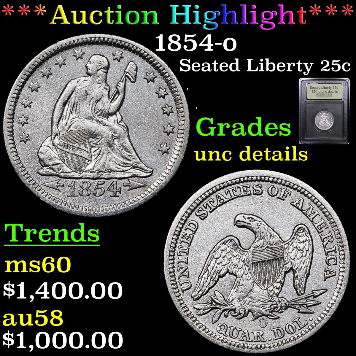 ***Auction Highlight*** 1854-o Seated Liberty Quarter 25c Graded Unc Details By USCG (fc)