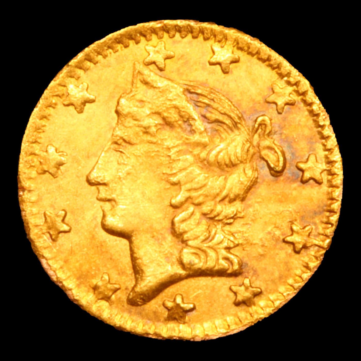***Auction Highlight*** 1855 BG-1302 R3 TOP POP! California fractional gold 25c Grades Select Unc. Up for Auction is an incredibly rare California Fractional Gold 25c. It is the BG-1302 R-3. To date NC has only graded 1 example, and that was an ms61. It has not come to auction since 2005. No others have ever been certified until this great example. It is easily identified as Star 6 and several other starts actually hit the denticles. Nice luster and well struck for a California Fractional Gold.\