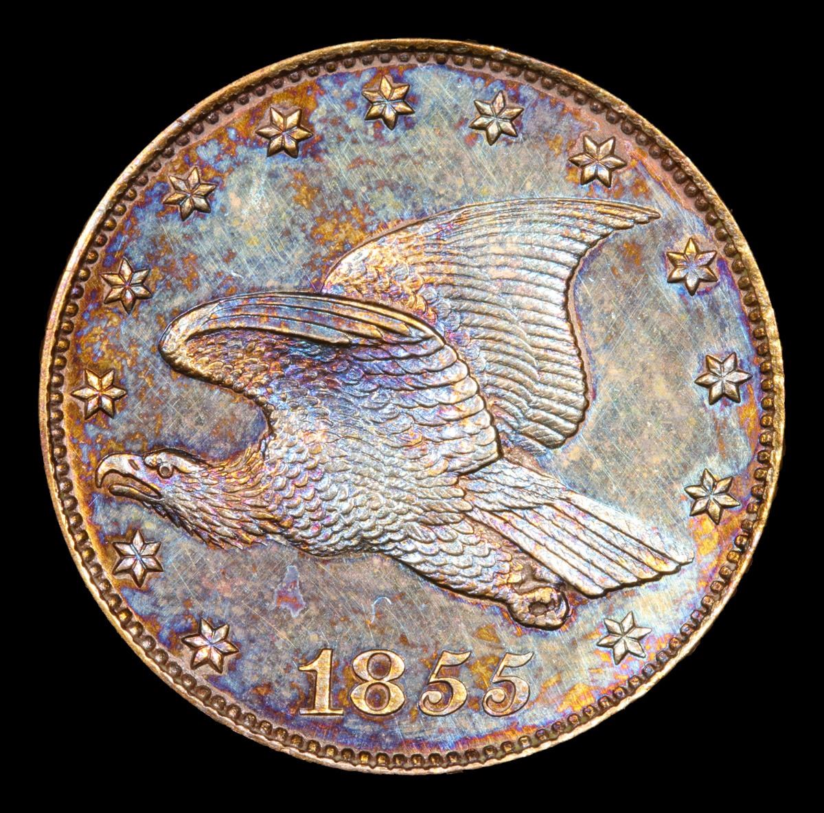 The 1855 J-167 had a very similar design to the 1854 flying eagle pattern cents (Coin # 11674) but with some slight modifications, such as having different style 5’s on the date. A Corey's Pick, Bid to Win, Don't let it get Away, you might not find its equal Coin. I give this coin my highest recommendation