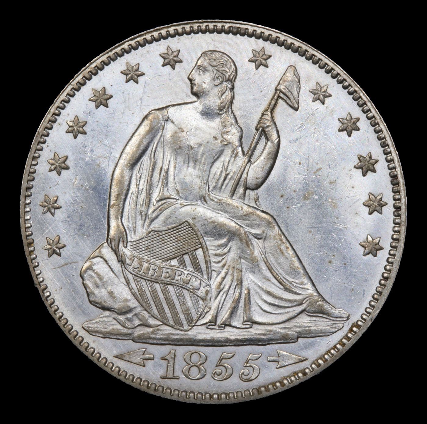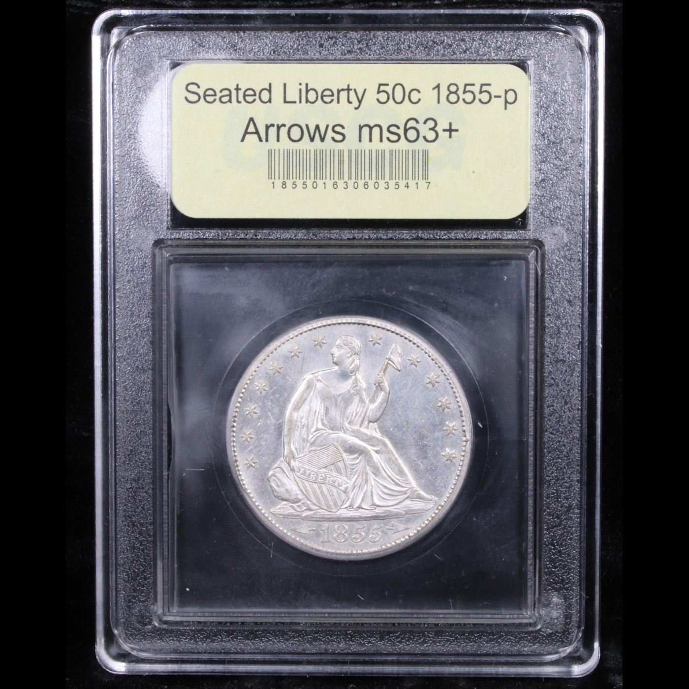 ***Auction Highlight*** 1855-p Arrows Seated Half Dollar 50c Graded Select+ Unc By USCG (fc)