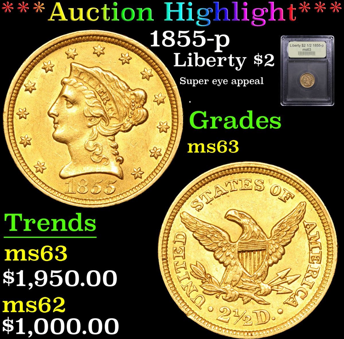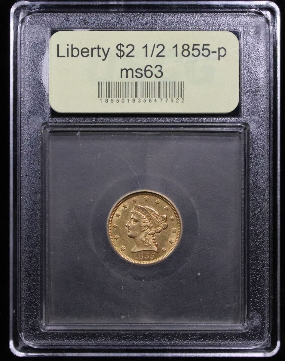 ***Auction Highlight*** 1855-p Super eye appeal . Gold Liberty Quarter Eagle $2 1/2 Graded Select Unc By USCG.