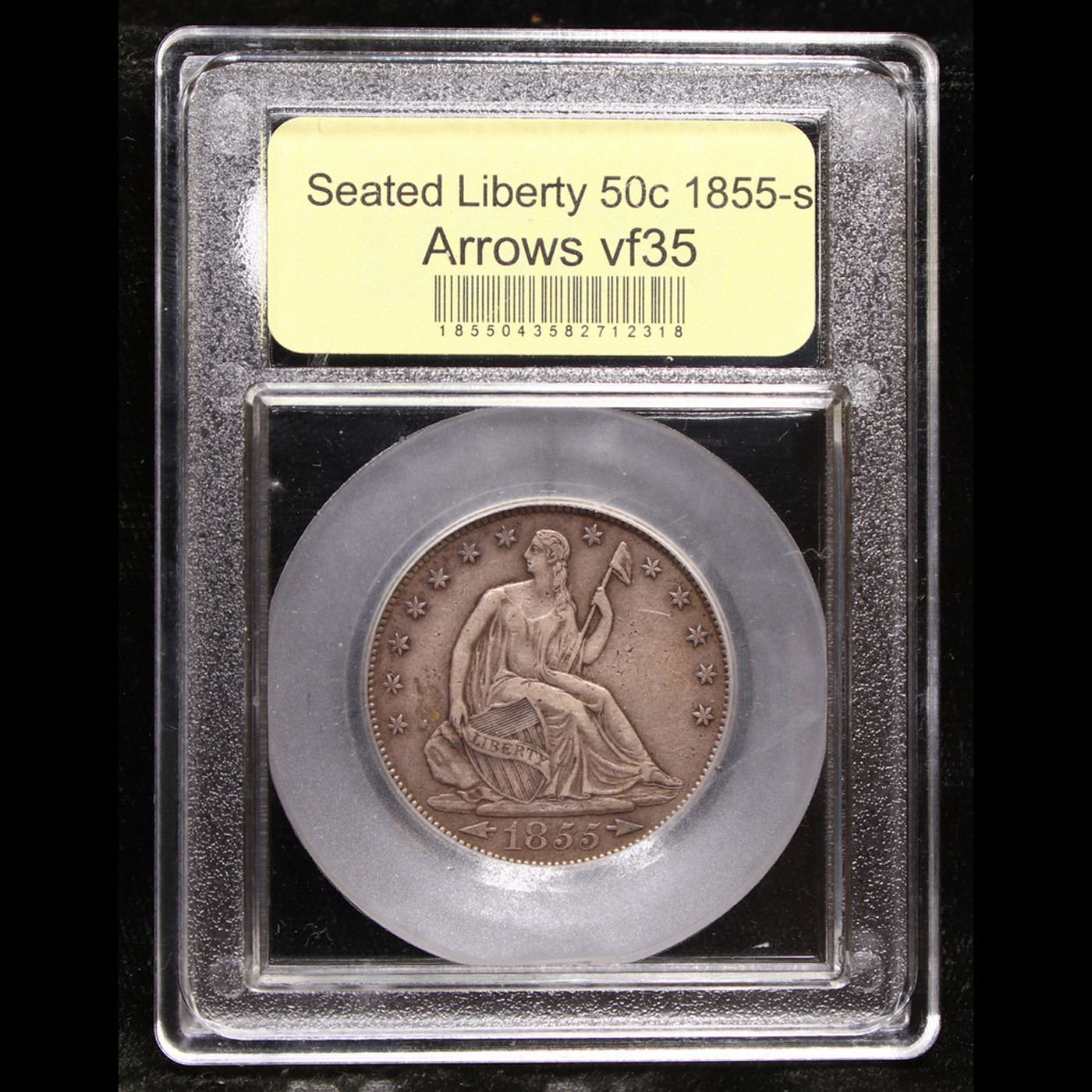 ***Auction Highlight*** 1855-s Arrows Seated Half Dollar 50c Graded vf++ By USCG.