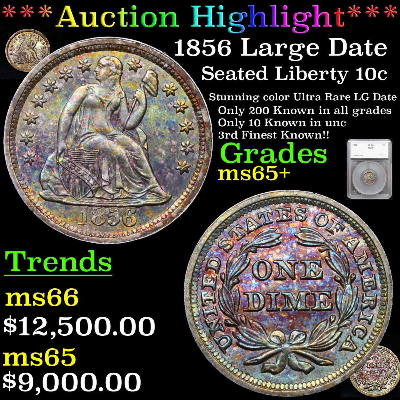 ***Auction Highlight*** 1856 Large Date Seated Liberty Dime 10c Graded ms65+ By SEGS. A Corey's Pick, Bid to Win, Don't let it get Away, you might not find its equal Coin. I give this coin my highest recommendation