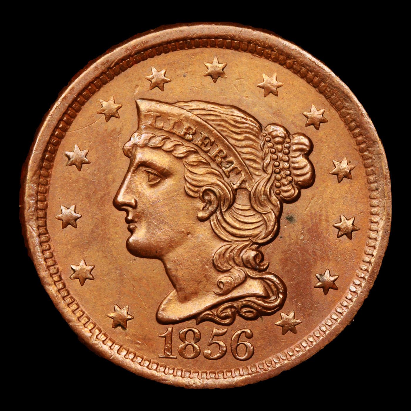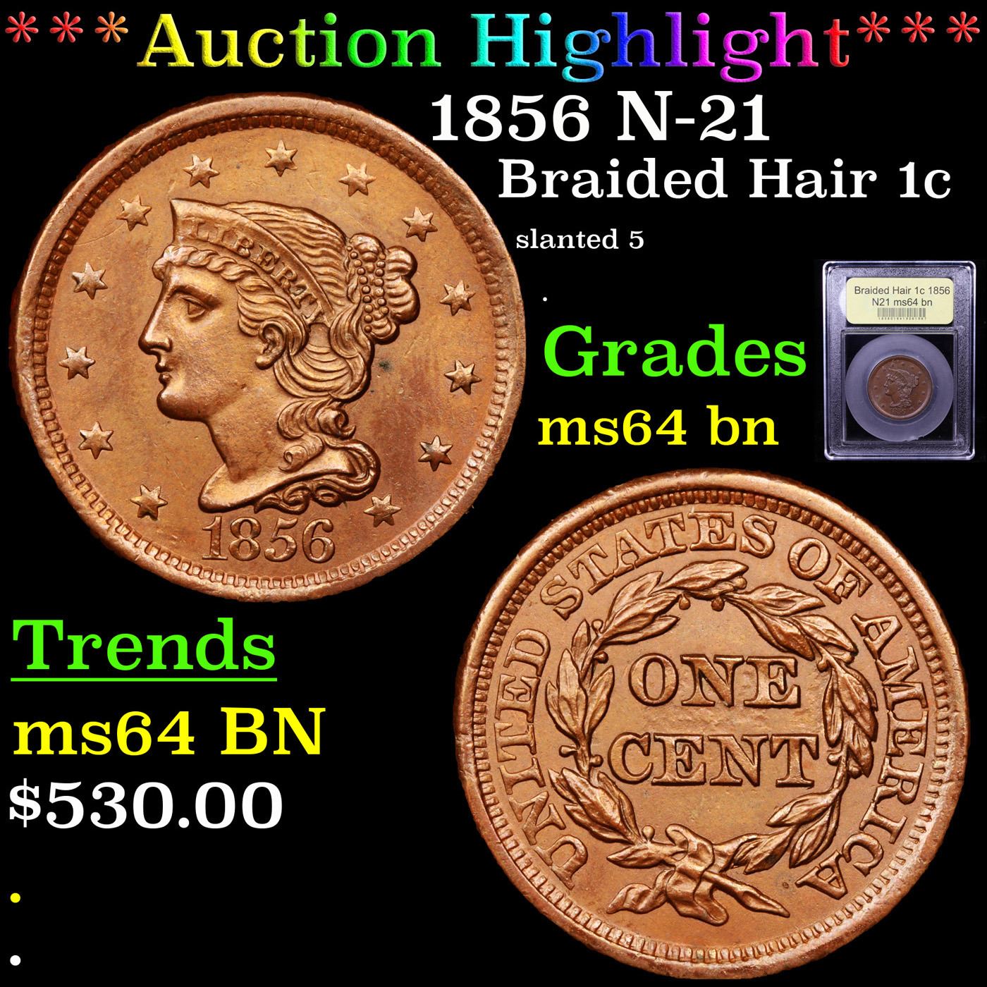 ***Auction Highlight*** 1856 N21 R2 Braided Hair Large Cent 1c Graded Choice Unc BN By USCG (fc)