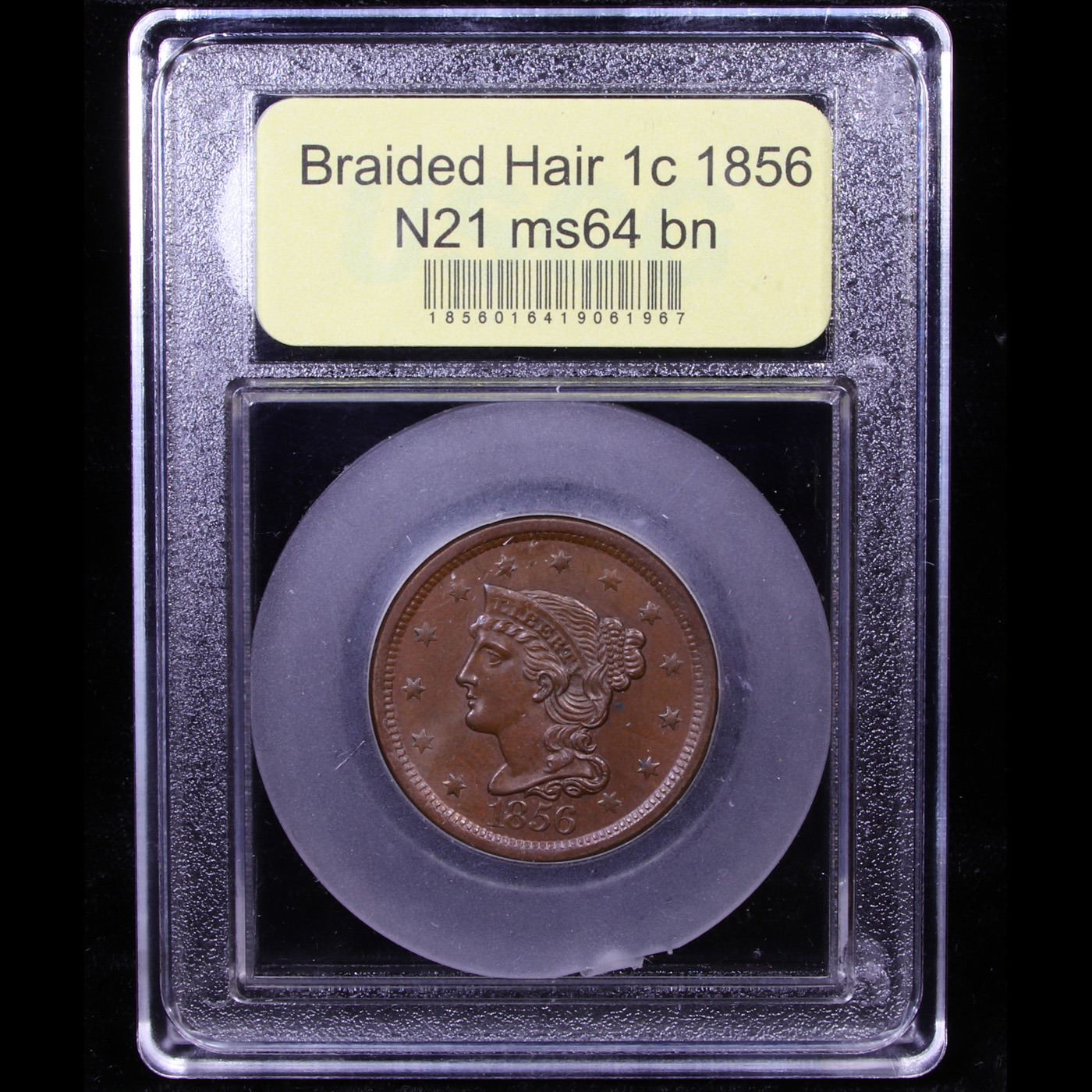 ***Auction Highlight*** 1856 N21 R2 Braided Hair Large Cent 1c Graded Choice Unc BN By USCG.