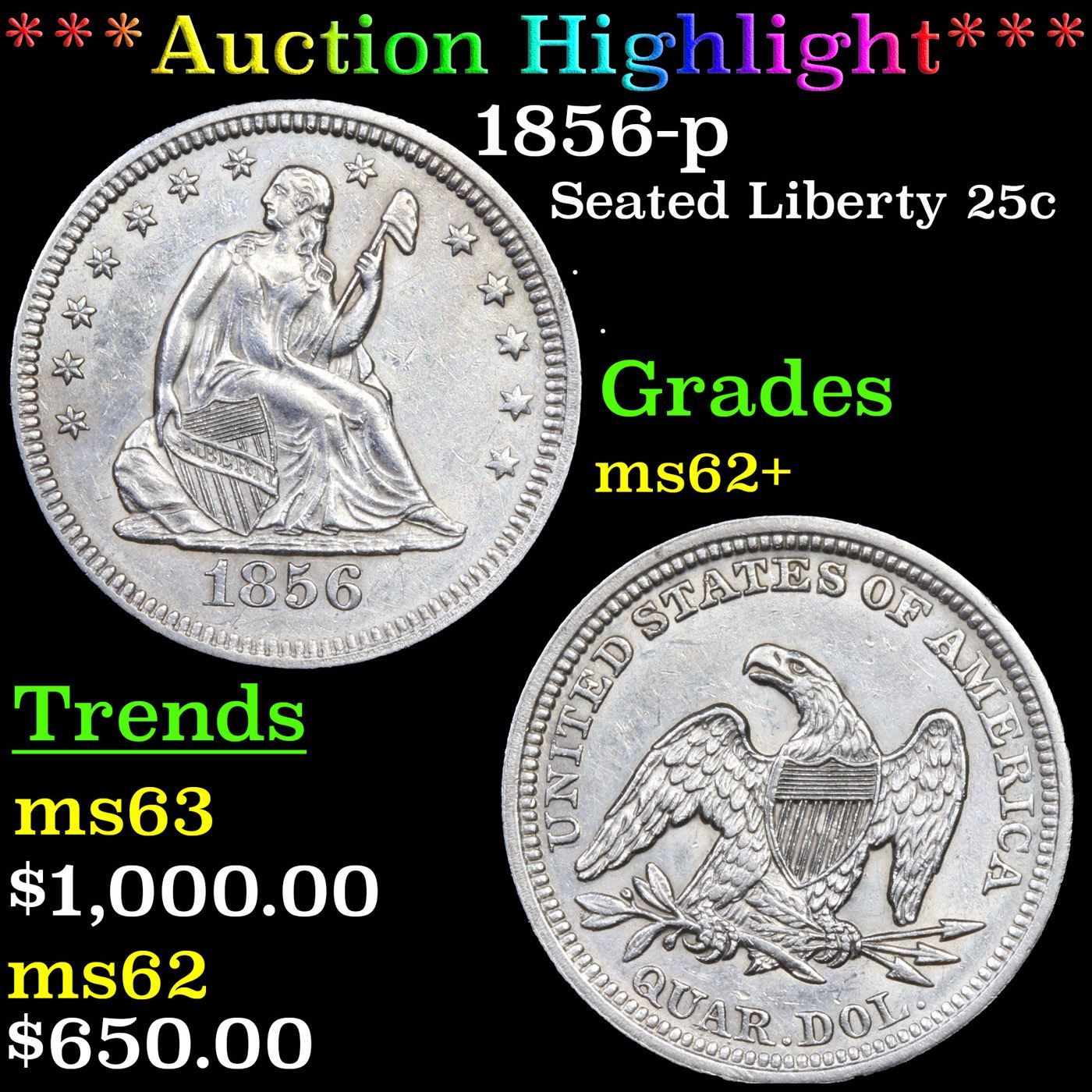 ***Auction Highlight*** 1856-p Seated Liberty Quarter 25c Graded Select Unc BY USCG (fc)