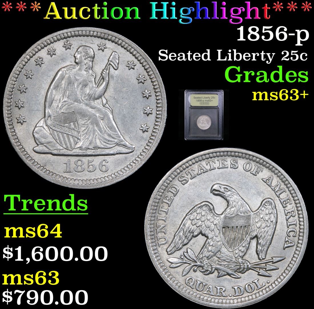 ***Auction Highlight*** 1856-p . . Seated Liberty Quarter 25c Graded Select+ Unc By USCG. A Corey's Pick, Bid to Win Coin