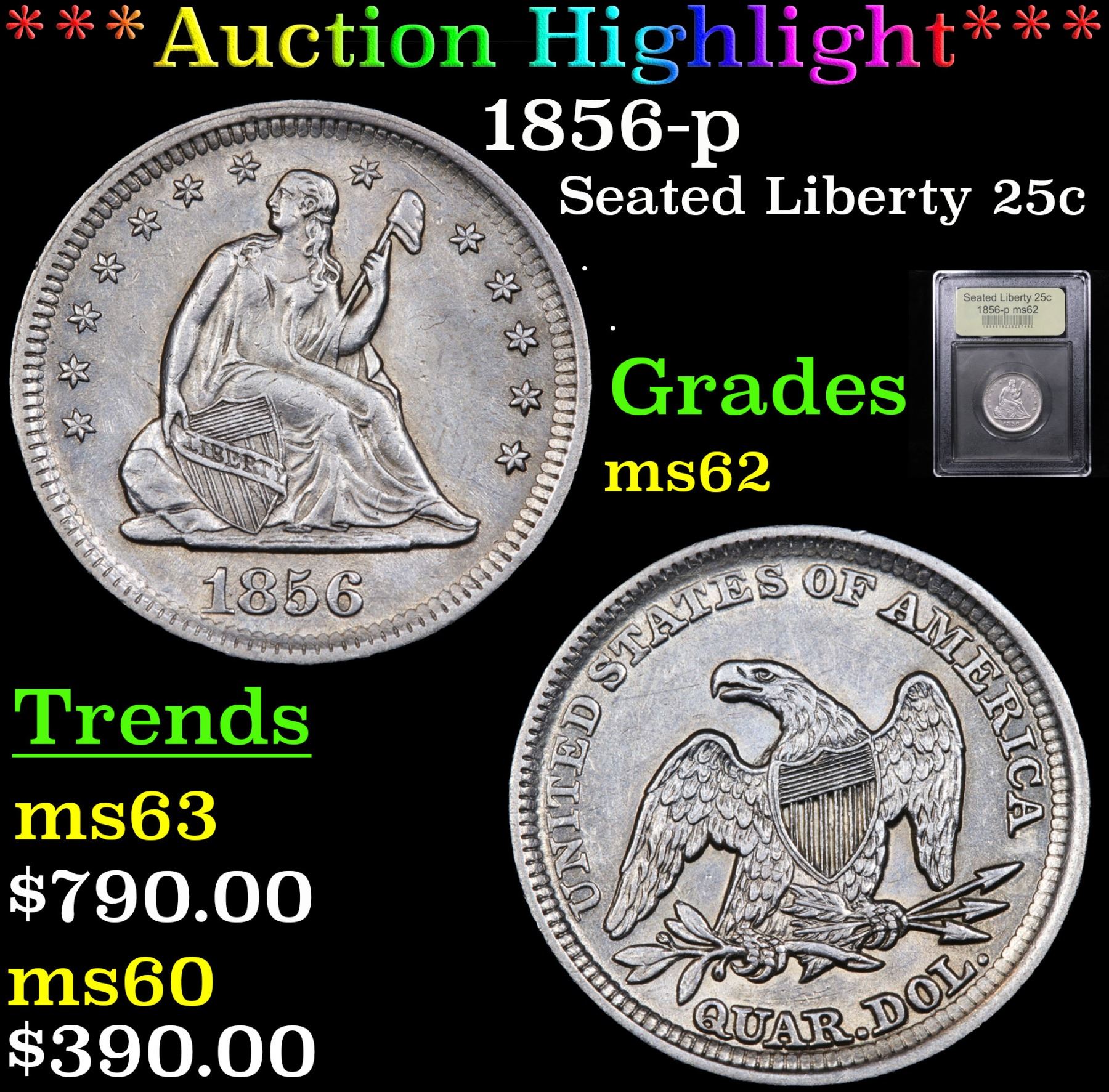 ***Auction Highlight*** 1856-p . . Seated Liberty Quarter 25c Graded Select Unc By USCG.