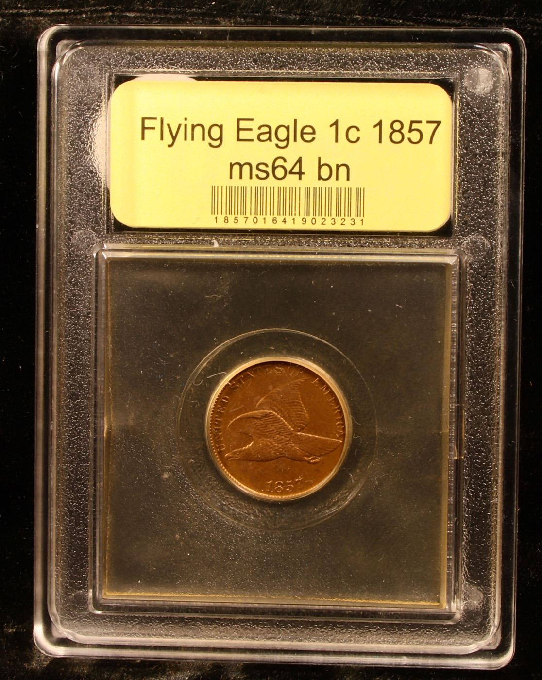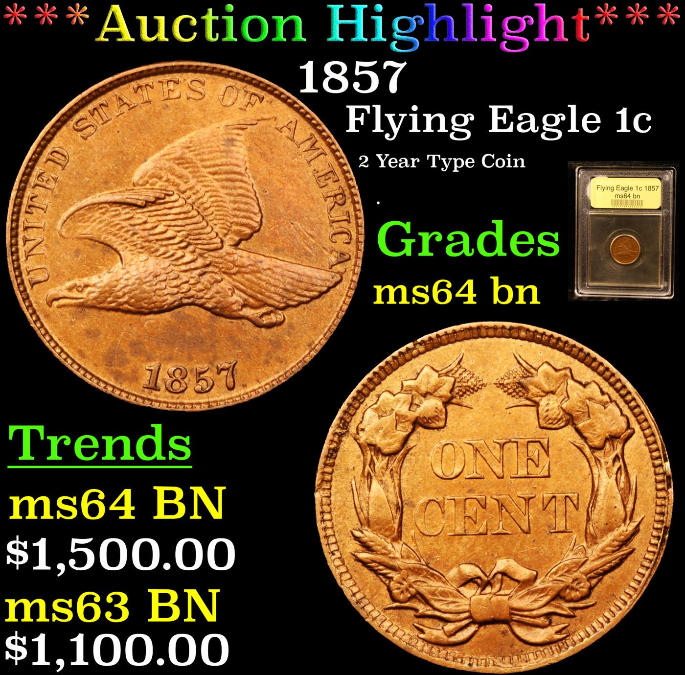 ***Auction Highlight*** 1857 Flying Eagle Cent 1c Graded Choice Unc BN By USCG. A Corey's Pick, Bid to Win, Don't let it get Away Coin