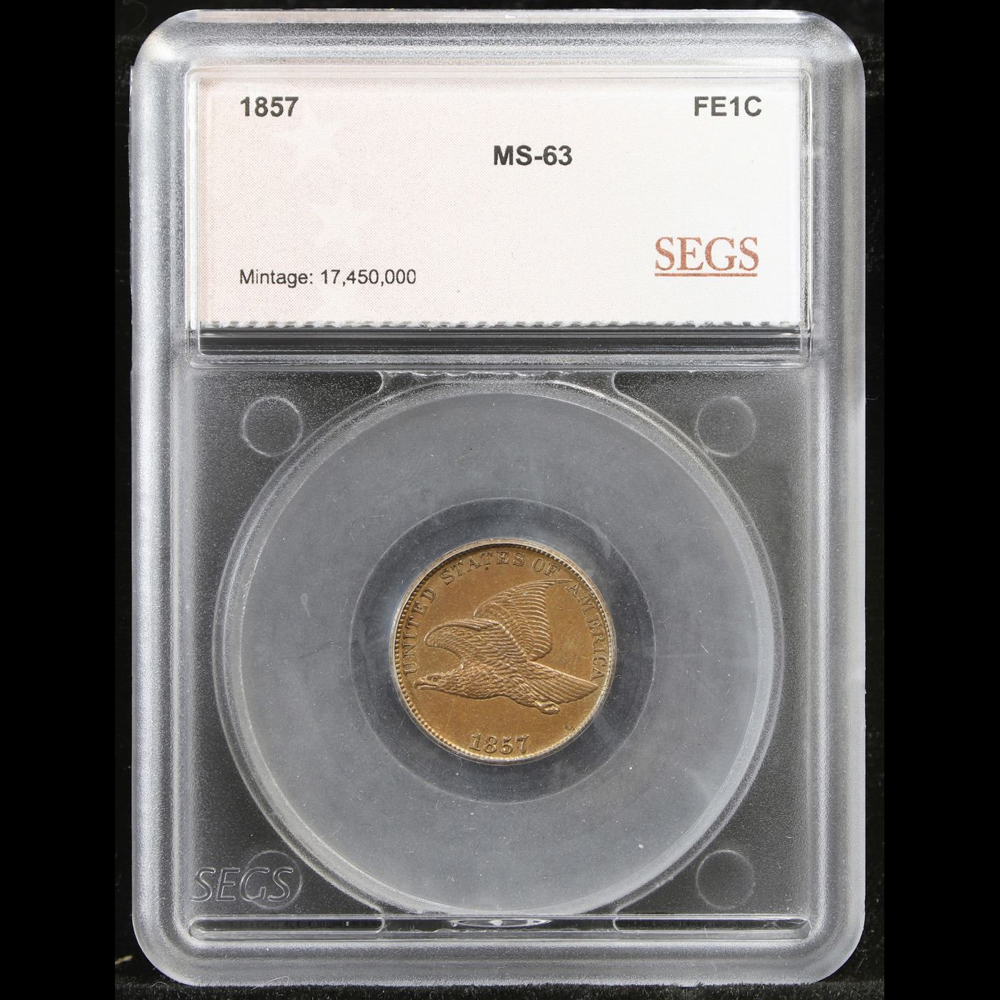 ***Auction Highlight*** 1857 Flying Eagle Cent 1c Graded ms63 by SEGS.