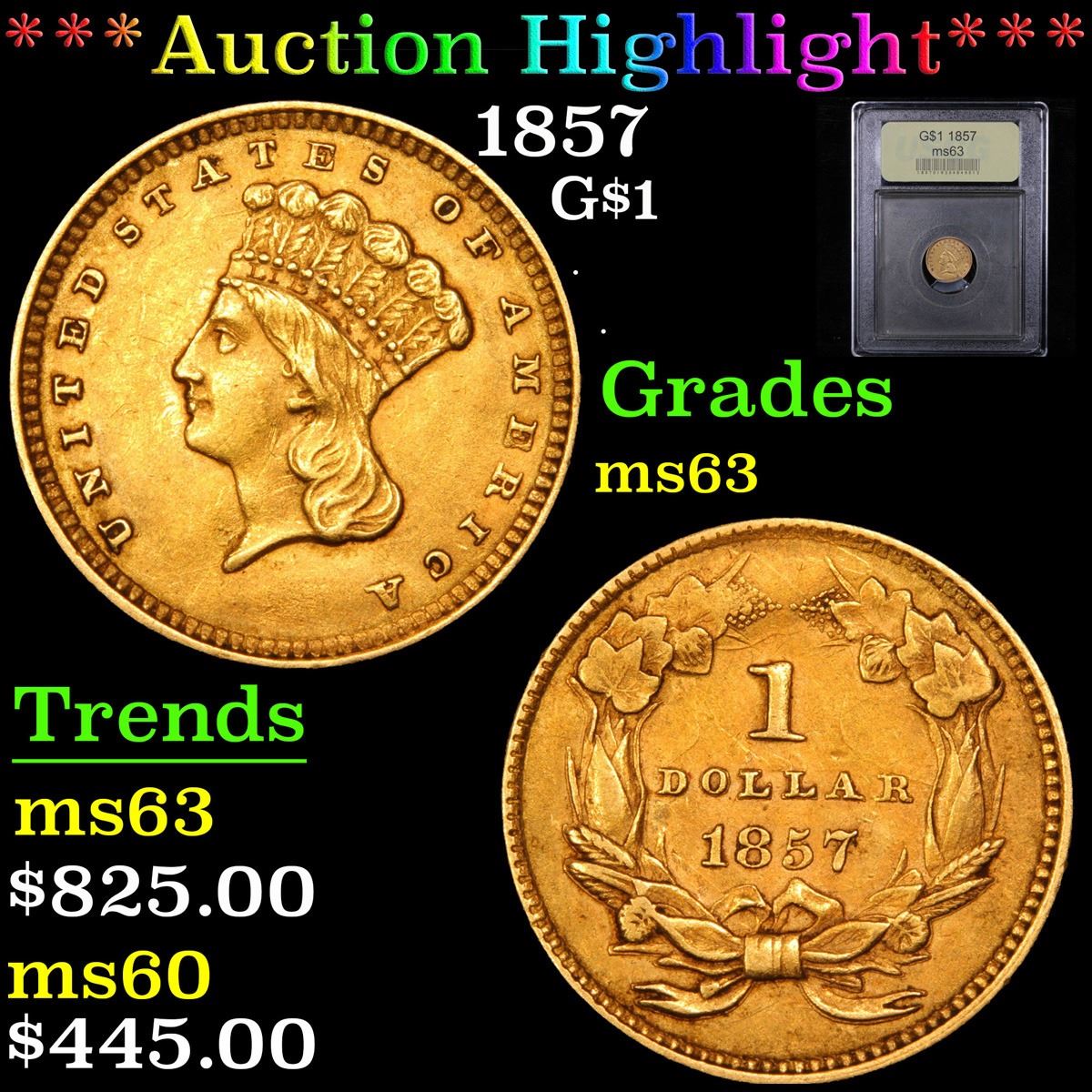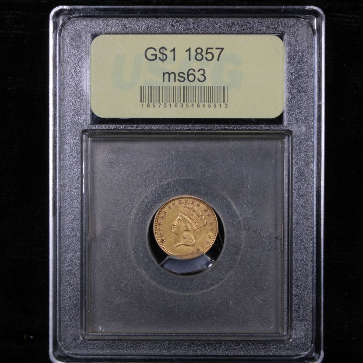 ***Auction Highlight*** 1857 . . Gold Dollar $1 Graded Select Unc By USCG. A Corey's Pick, Bid to Win Coin