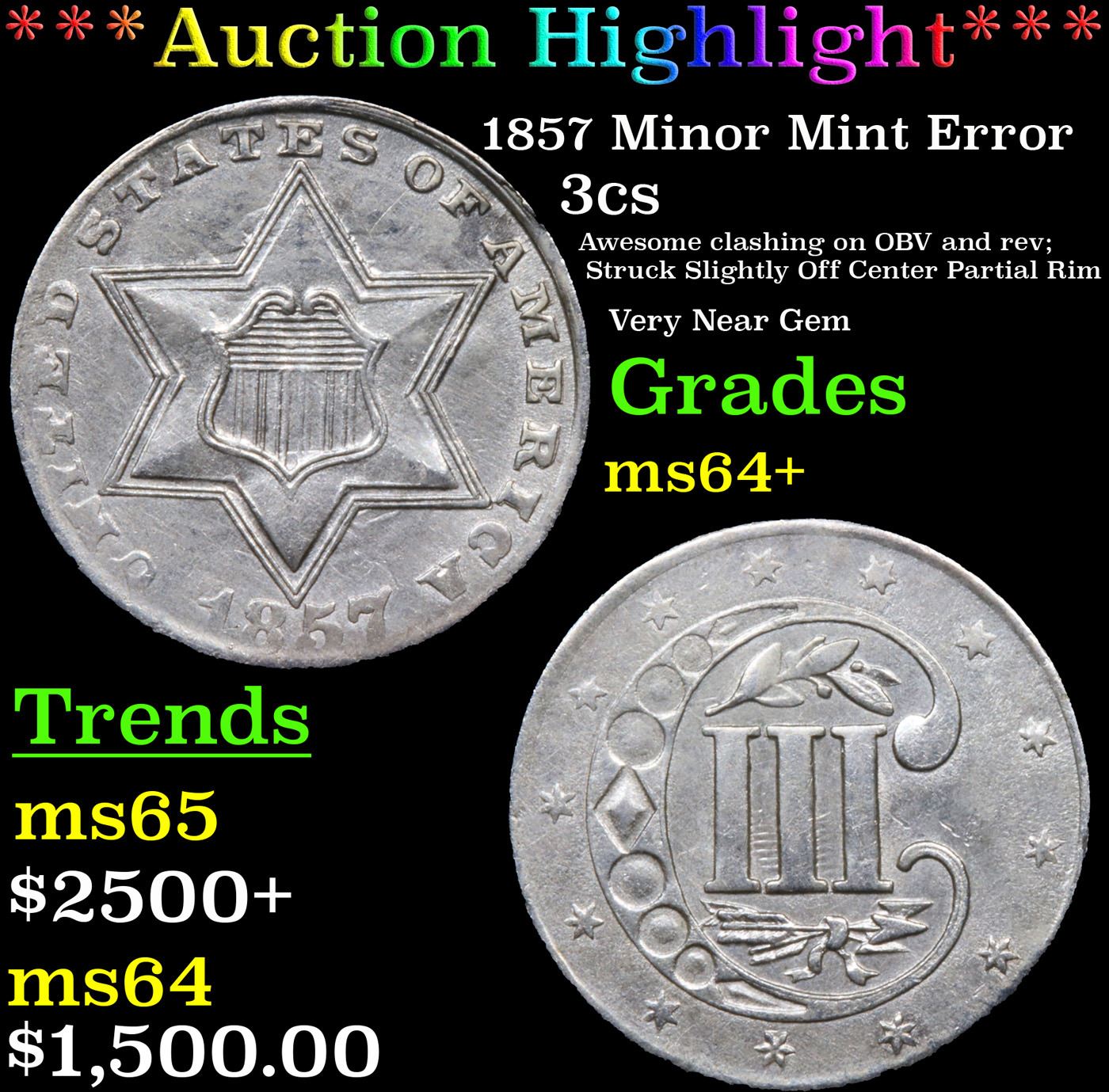 ***Auction Highlight*** 1857 Minor Mint Error Three Cent Silver 3cs Graded Choice+ Unc By USCG (fc)