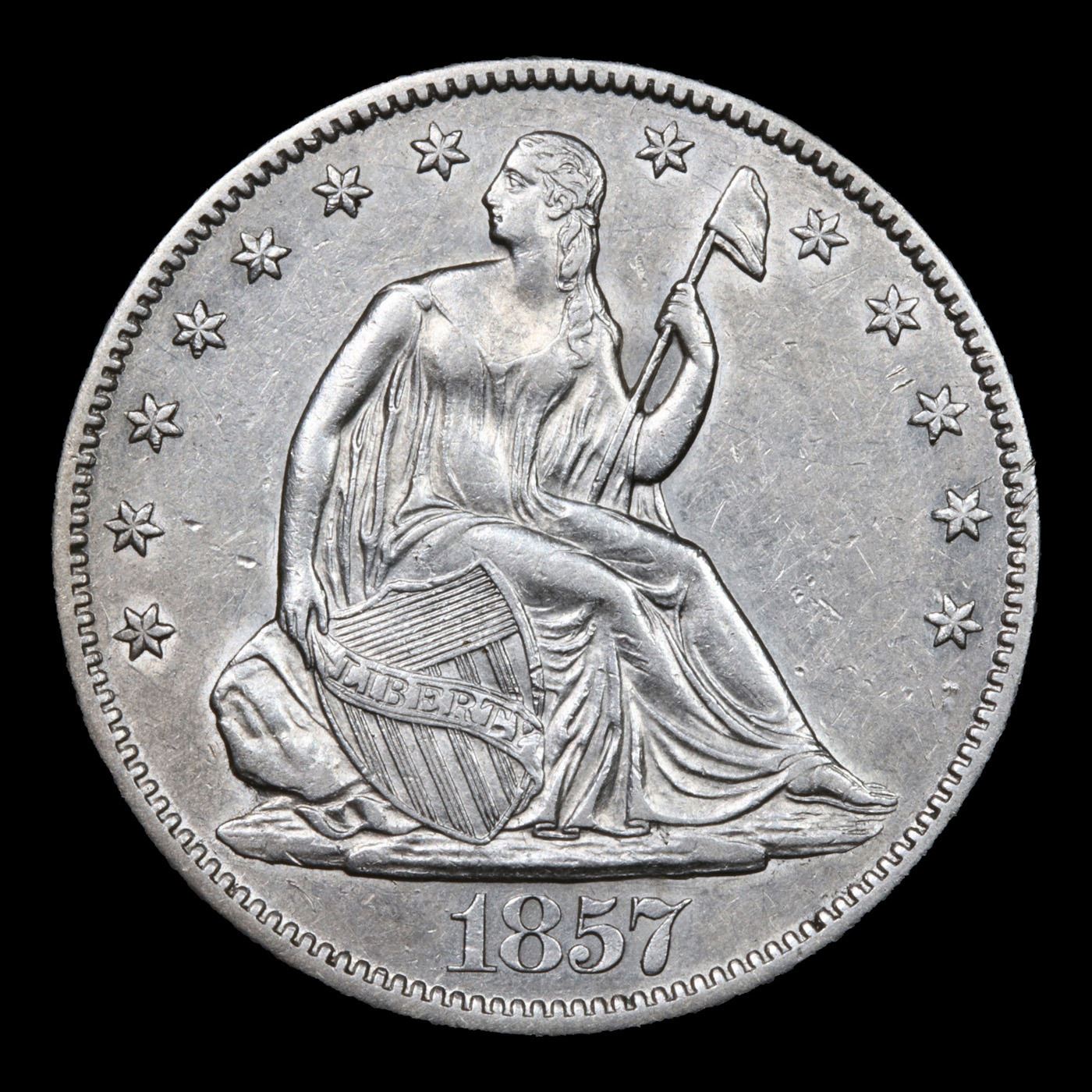 ***Auction Highlight*** 1857-o Seated Half Dollar 50c Graded Choice AU/BU Slider+ By USCG. A Corey's Pick, Bid to Win Coin