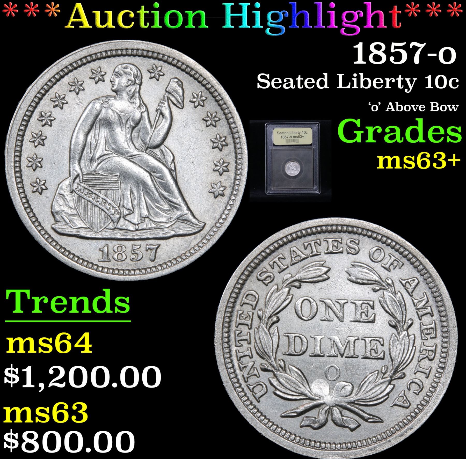 ***Auction Highlight*** 1857-o 'o' Above Bow . Seated Liberty Dime 10c Graded Select+ Unc By USCG.