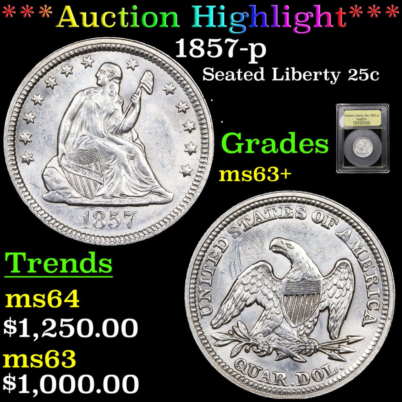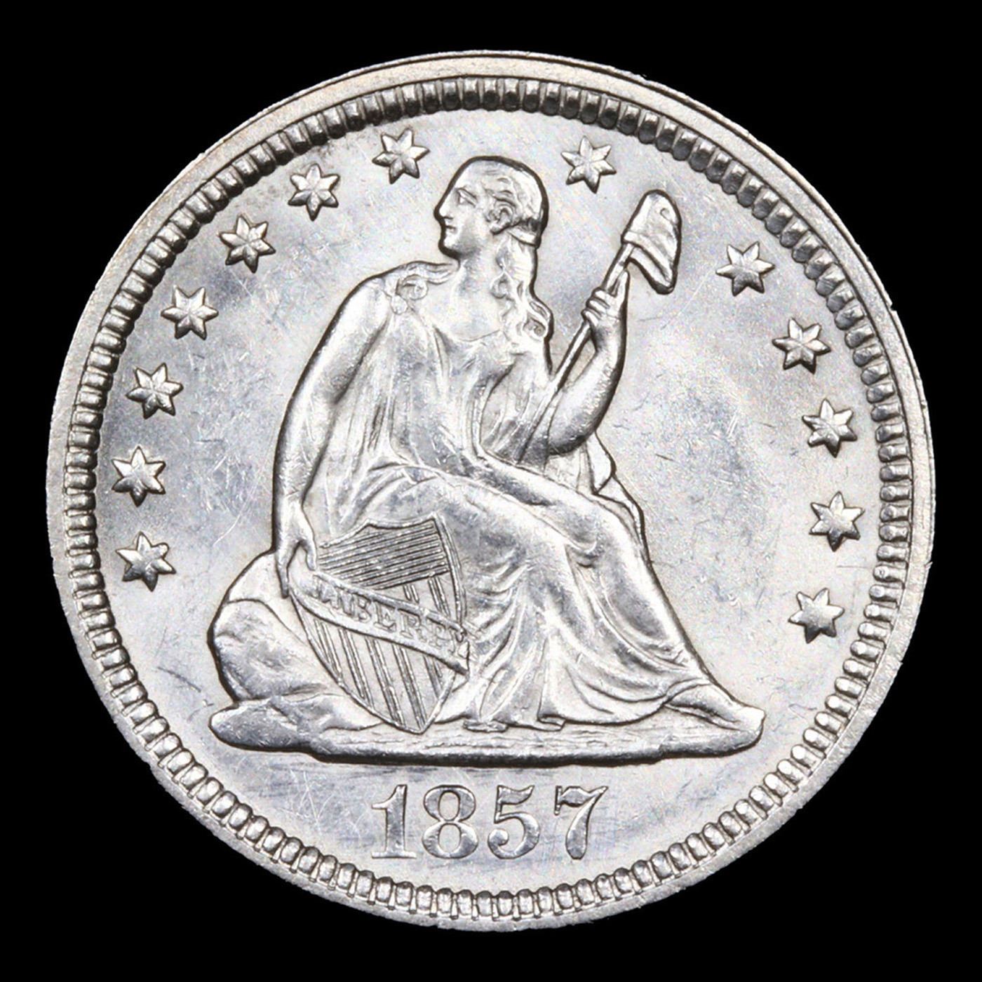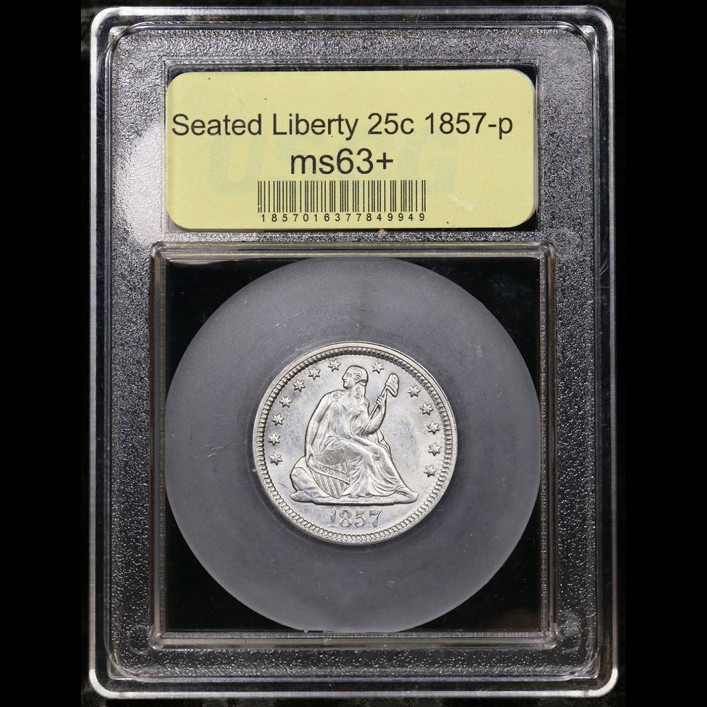 ***Auction Highlight*** 1857-p Seated Liberty Quarter 25c Graded Select+ Unc BY USCG.