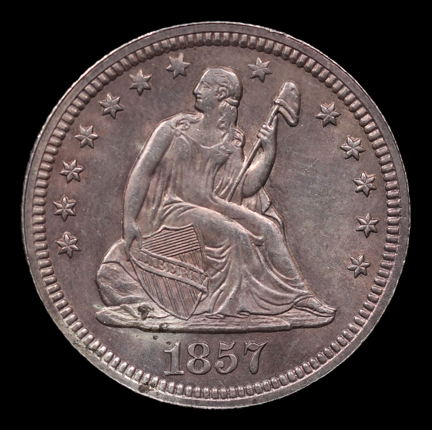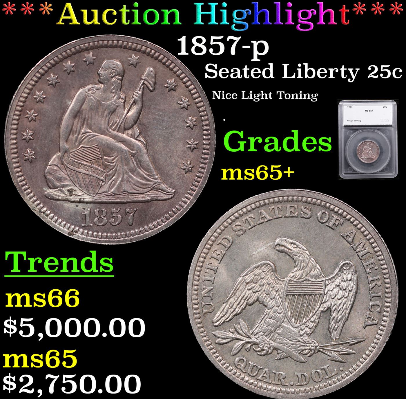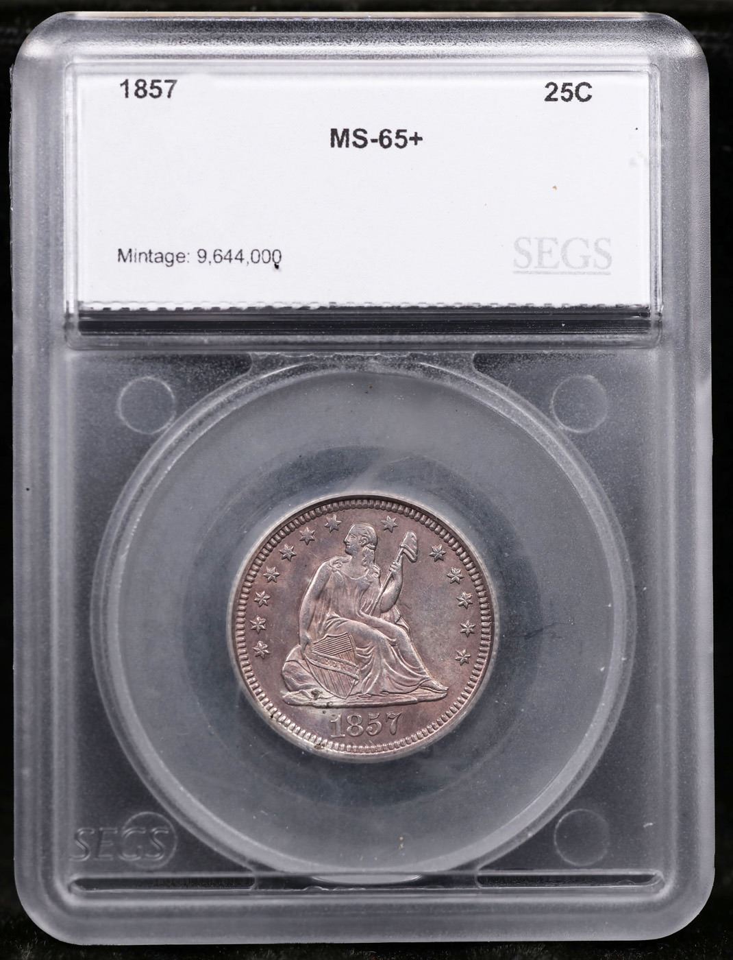 ***Auction Highlight*** 1857-p Seated Liberty Quarter 25c Graded ms65+ By SEGS.