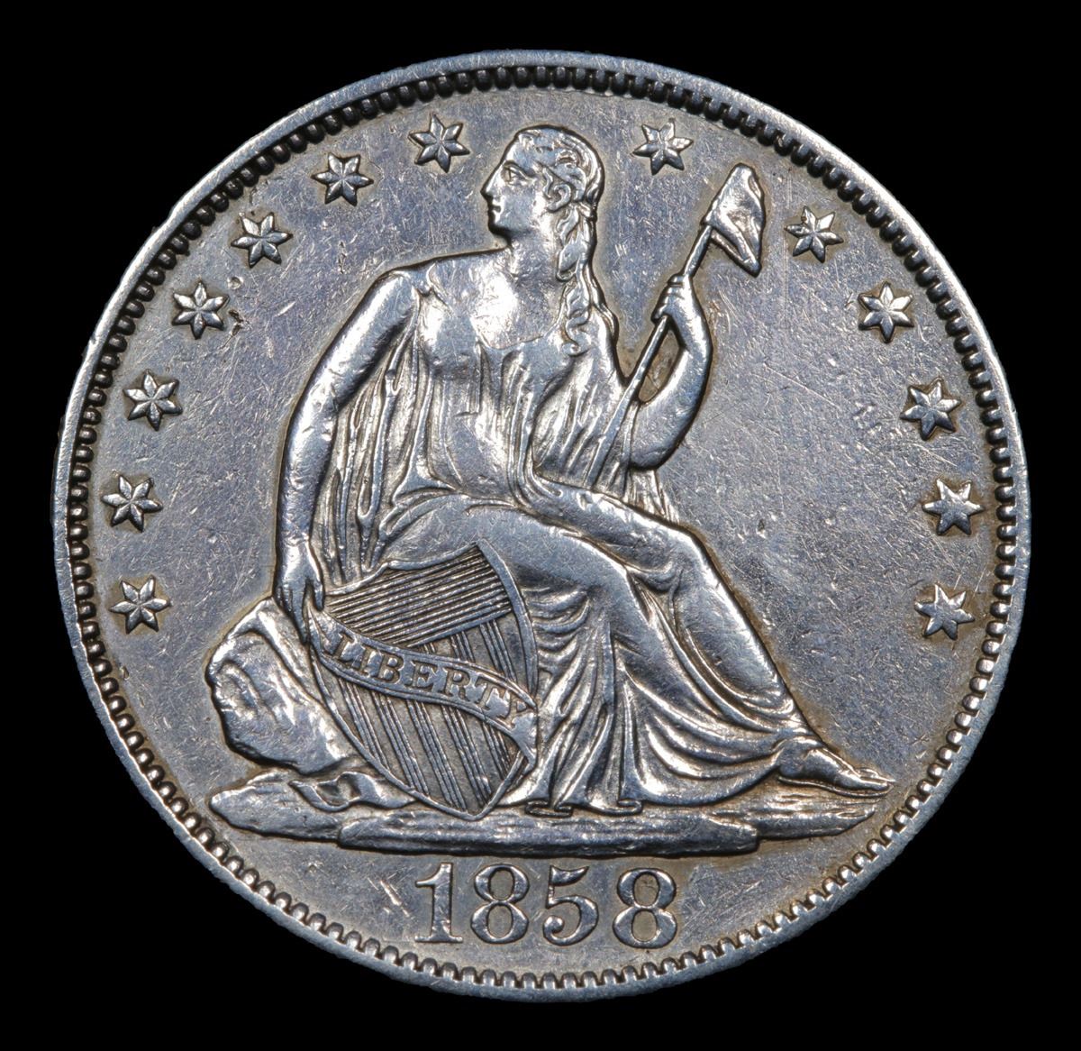 ***Auction Highlight*** 1858-o WB-6 R3 Seated Half Dollar 50c Graded Choice AU/BU Slider By USCG (fc