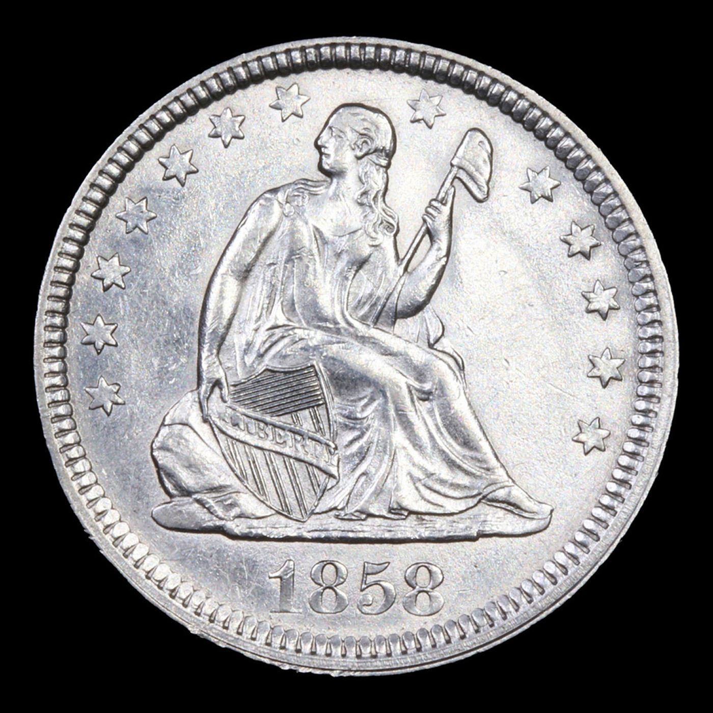 ***Auction Highlight*** 1858-p Seated Liberty Quarter 25c Graded Choice Unc BY USCG (fc)