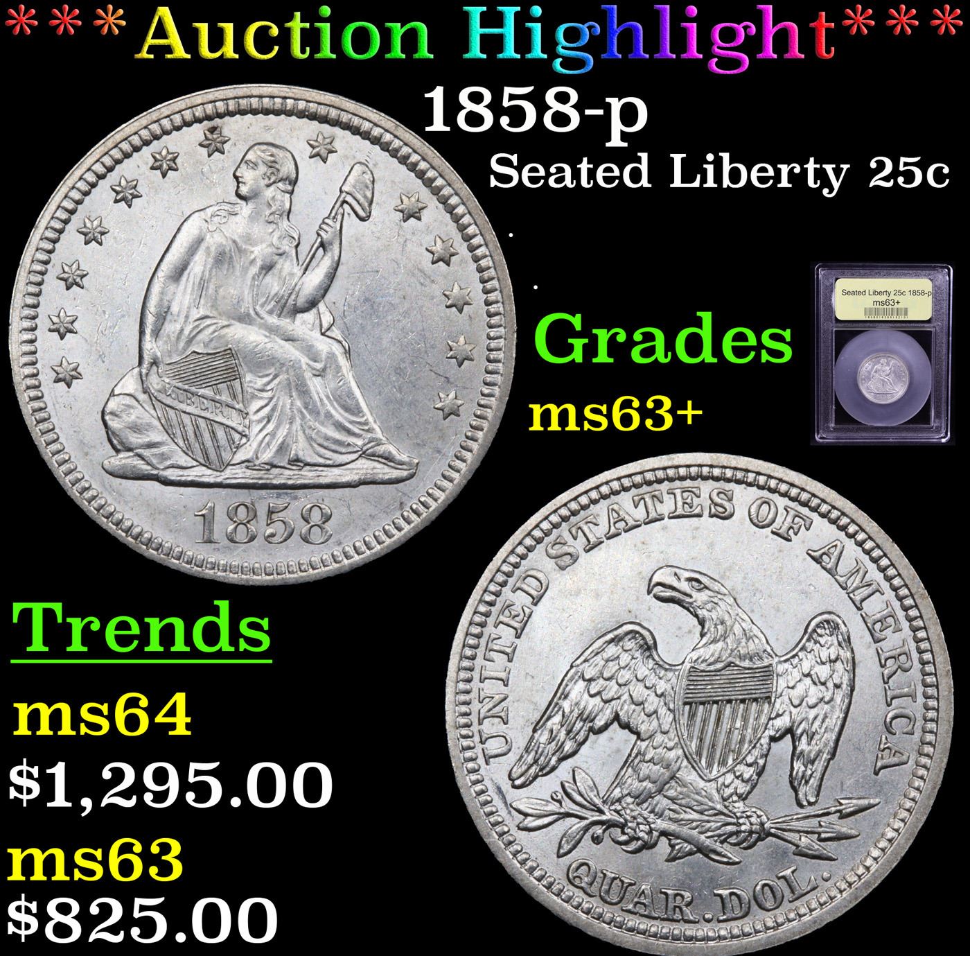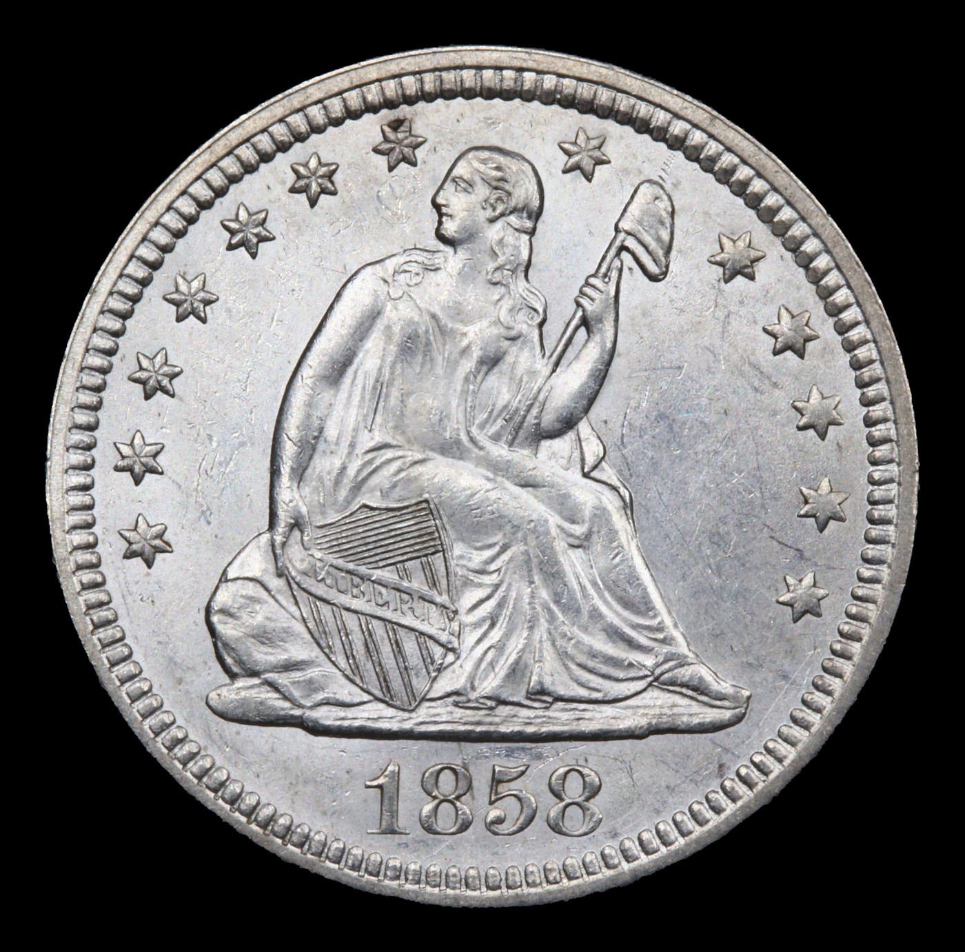 ***Auction Highlight*** 1858-p Seated Liberty Quarter 25c Graded Select+ Unc By USCG (fc)