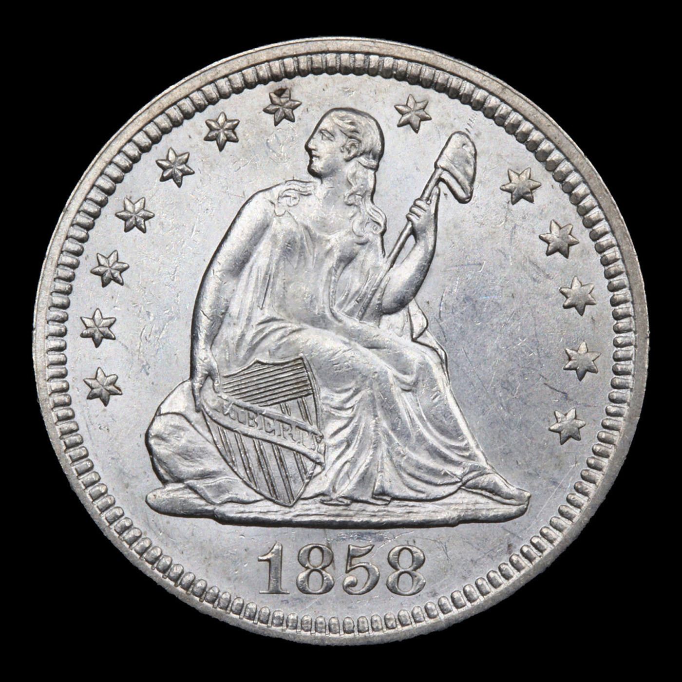 ***Auction Highlight*** 1858-p Seated Liberty Quarter 25c Graded Select+ Unc By USCG.