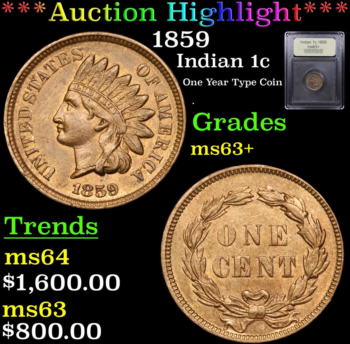 ***Auction Highlight*** 1859 One Year Type Coin . Indian Cent 1c Graded Select+ Unc By USCG.