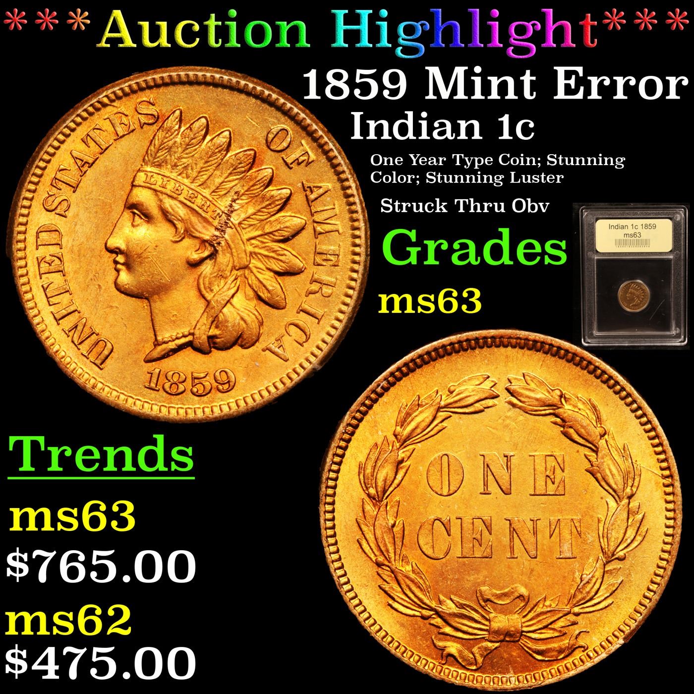 ***Auction Highlight*** 1859 Mint Error Indian Cent 1c Graded Select Unc By USCG. A Corey's Pick, Bid to Win Coin